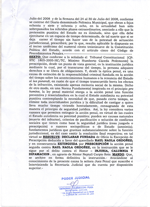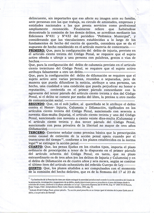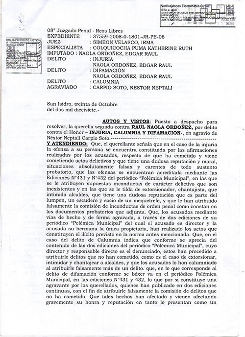 Primero quiero aclarar que en los casi 15 años de vigencia de Polémica Municipal, nunca hemos tenido denuncia alguna, ni proceso judicial por este hecho. Lo cierto es que el denunciante, un tal Pedro Martínez, es un arquitecto que «funge» como comunicador social pero que no tiene la menor idea que lo que es el periodismo especializado. Nosotros, como cualquier periódico, tenemos secciones establecidas y también columnistas de opinión que comentan y analizan temas de coyuntura municipal y regional. Nuestro semanario se ha creado para fortalecer a los Gobiernos Locales y Regionales, informando hechos, logros alcanzados y metas trazadas de las autoridades. En algunos casos, los alcaldes publican avisos donde dan a conocer sus propuestas, logros y proyectos. Es así que estas secciones se identifican al colocar el pie de aviso en la parte superior o inferior, según indica la norma del Indecopi. Ante este hecho el mencionado organismo ya se pronunció, dándonos la razón. Por lo tanto, Pedro Martínez ha perdido el proceso judicial que entabló en contra de nosotros. La Resolución 1560-2010/SC1-INDECOPI a la letra dice: «Asimismo, se CONFIRMA la resolución apelada en el extremo que DECLARÓ IMPROCEDENTE la denuncia por la presunta infracción al principio de autenticidad en materia publicitaria. Las notas publicadas en «Polémica Municipal» están referidas a la gestión municipal y no apunta a promover directa o indirectamente la contratación de bienes o servicios de un agente económico que concurre en el mercado, por lo que no califican como publicidad comercial, y por tanto, su juzgamiento no se encuentra dentro del ámbito del Decreto Legislativo 1044.». Nos han absuelto de todo y seguimos trabajando con el mismo entusiasmo, esfuerzo y tesón de nuestro primer día. |