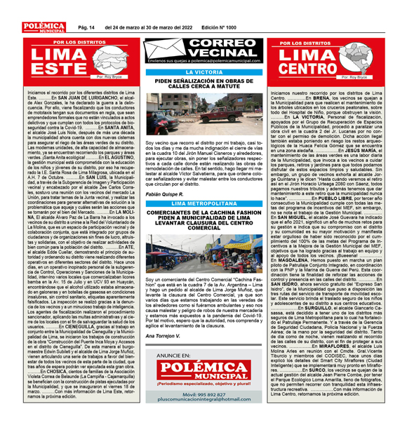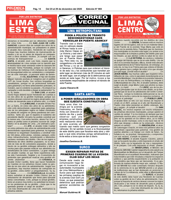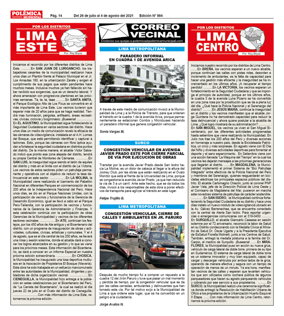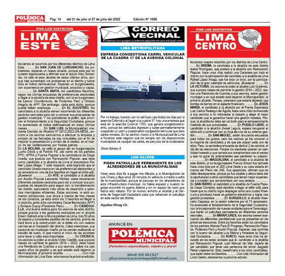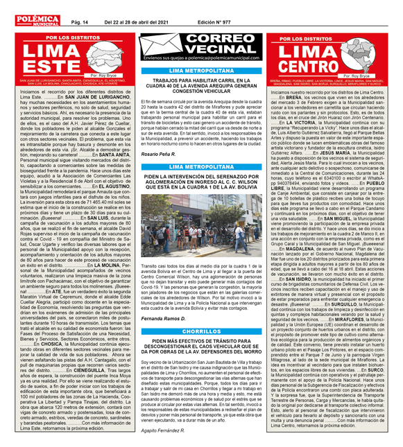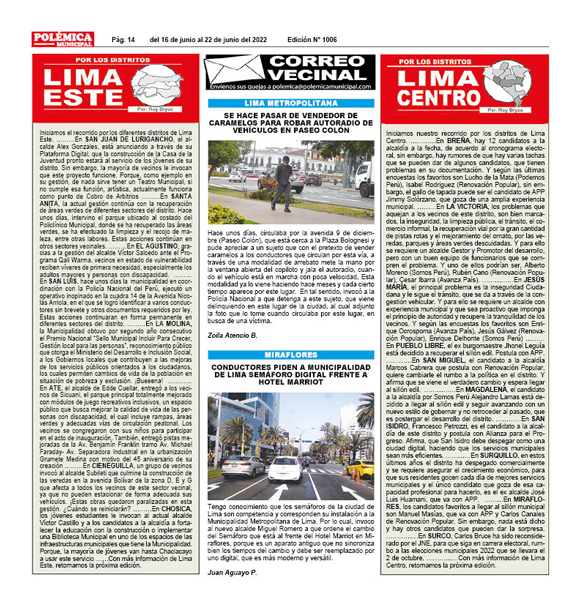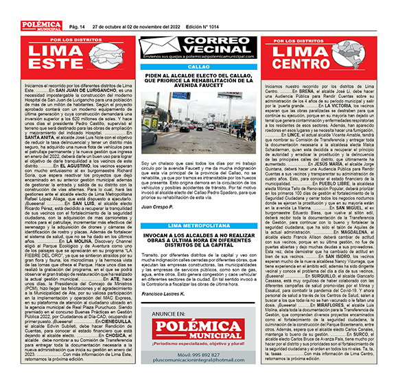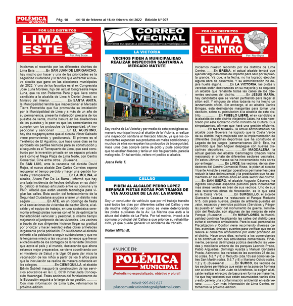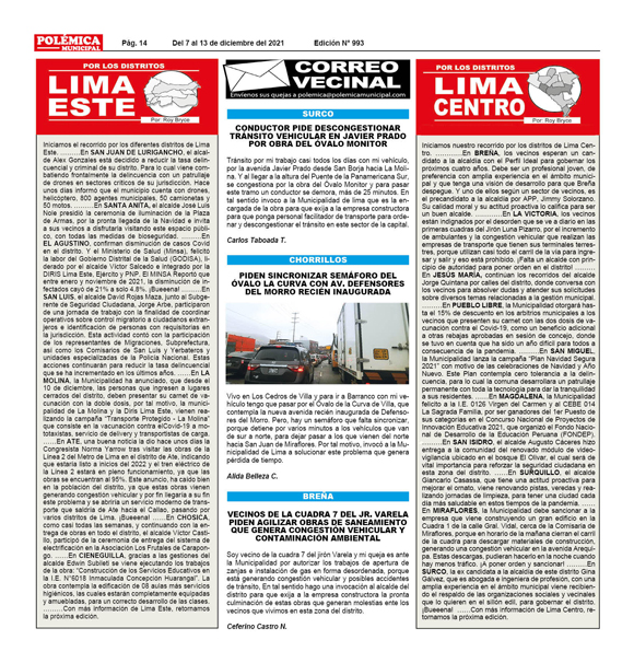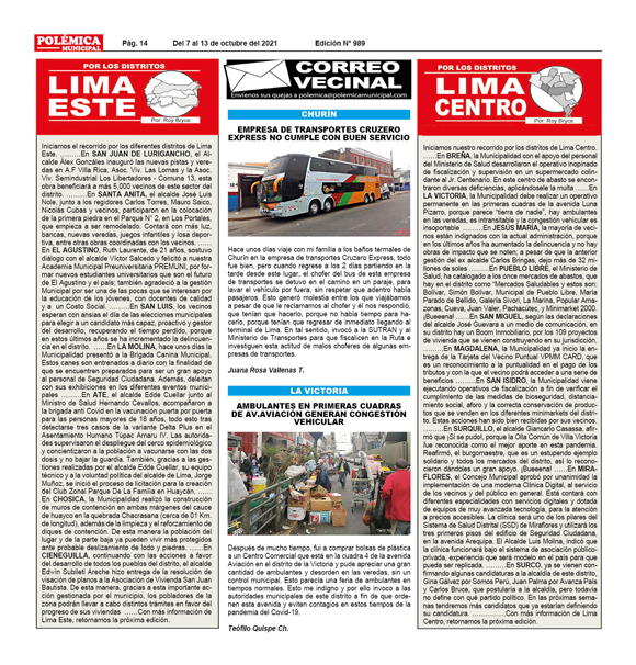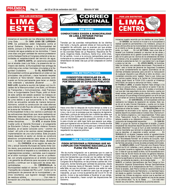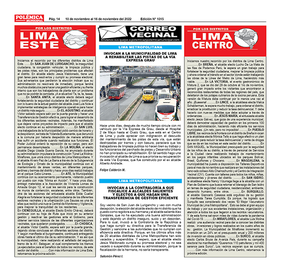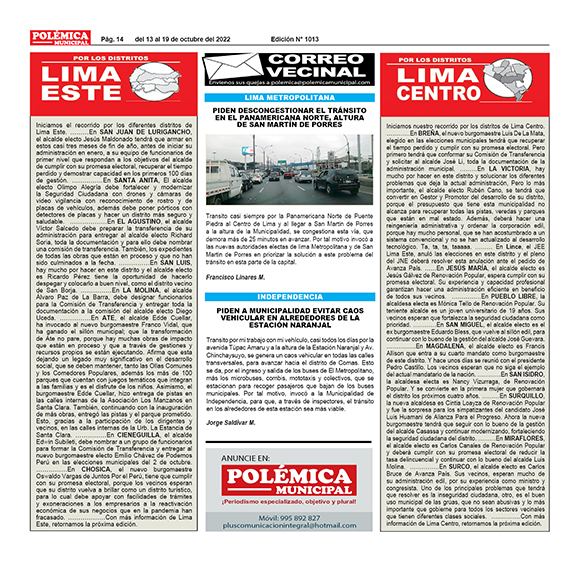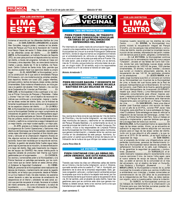 EDICION Nº 962. CORREO VECINAL, LIMA ESTE Y LIMA CENTRO.