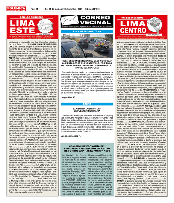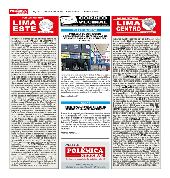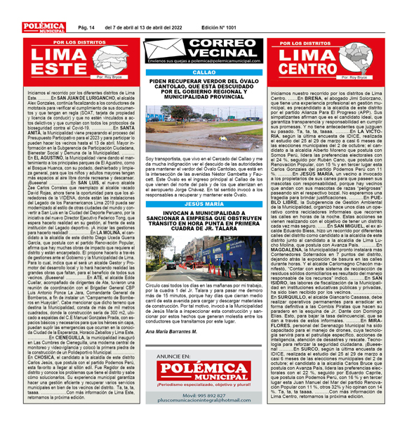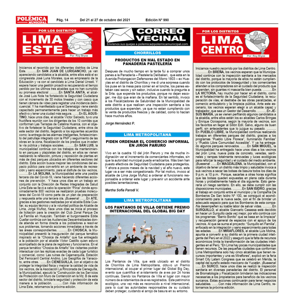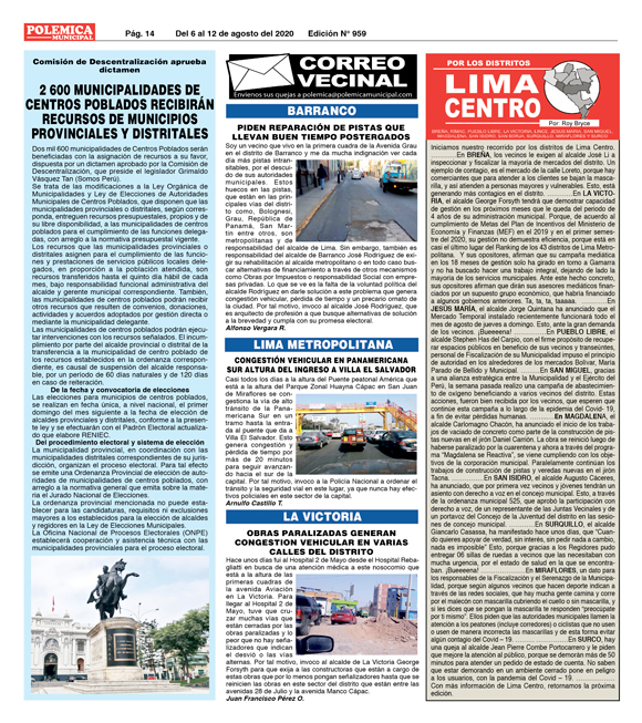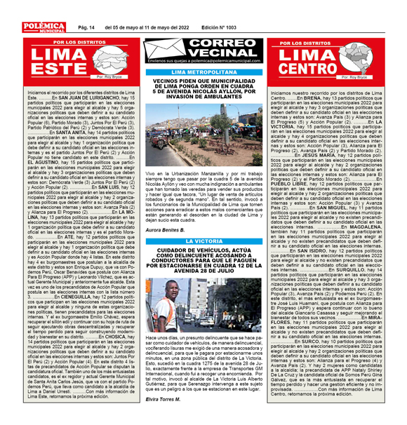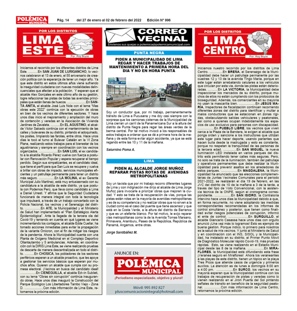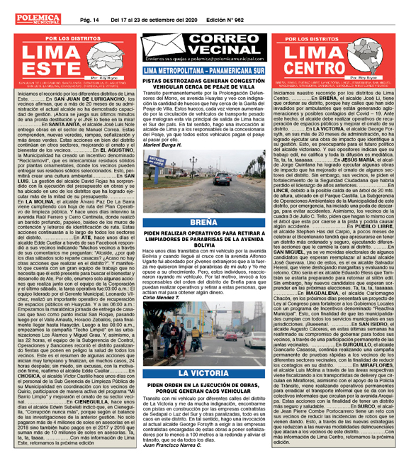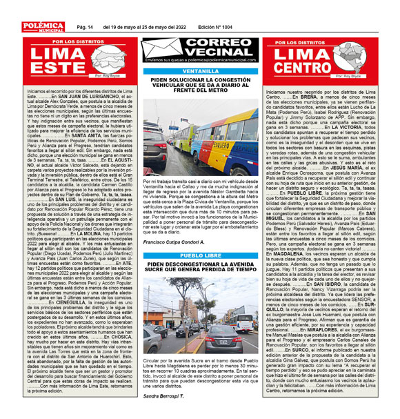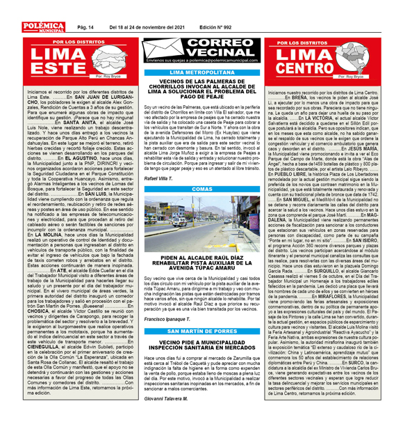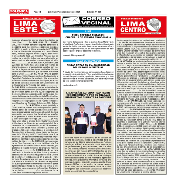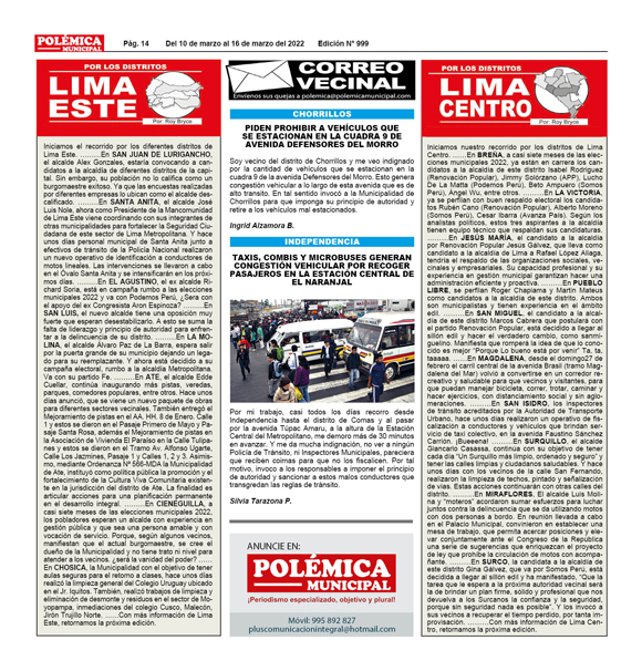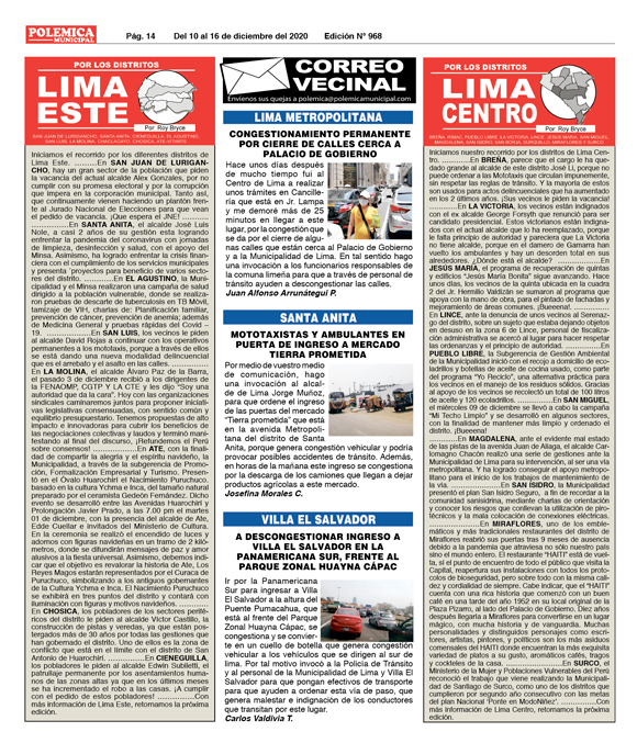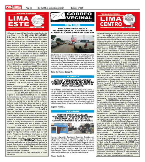 EDICION Nº 962. CORREO VECINAL, LIMA ESTE Y LIMA CENTRO.
