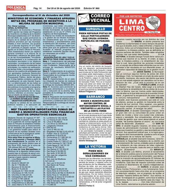 EDICION Nº 959. CORREO VECINAL Y LIMA CENTRO.