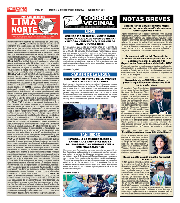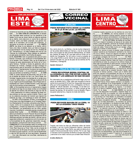 EDICION Nº 961. CORREO VECINAL, LIMA NORTE.