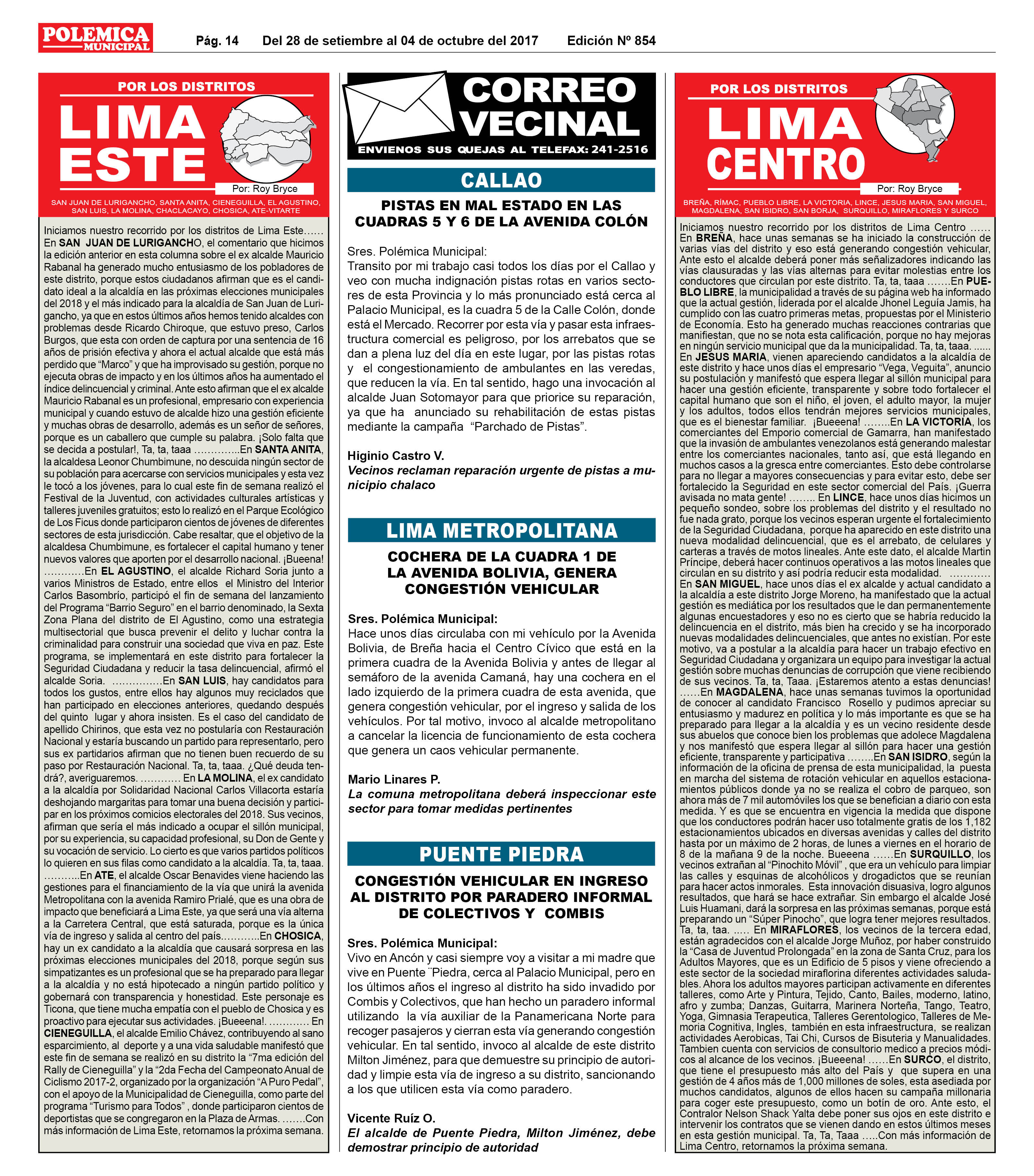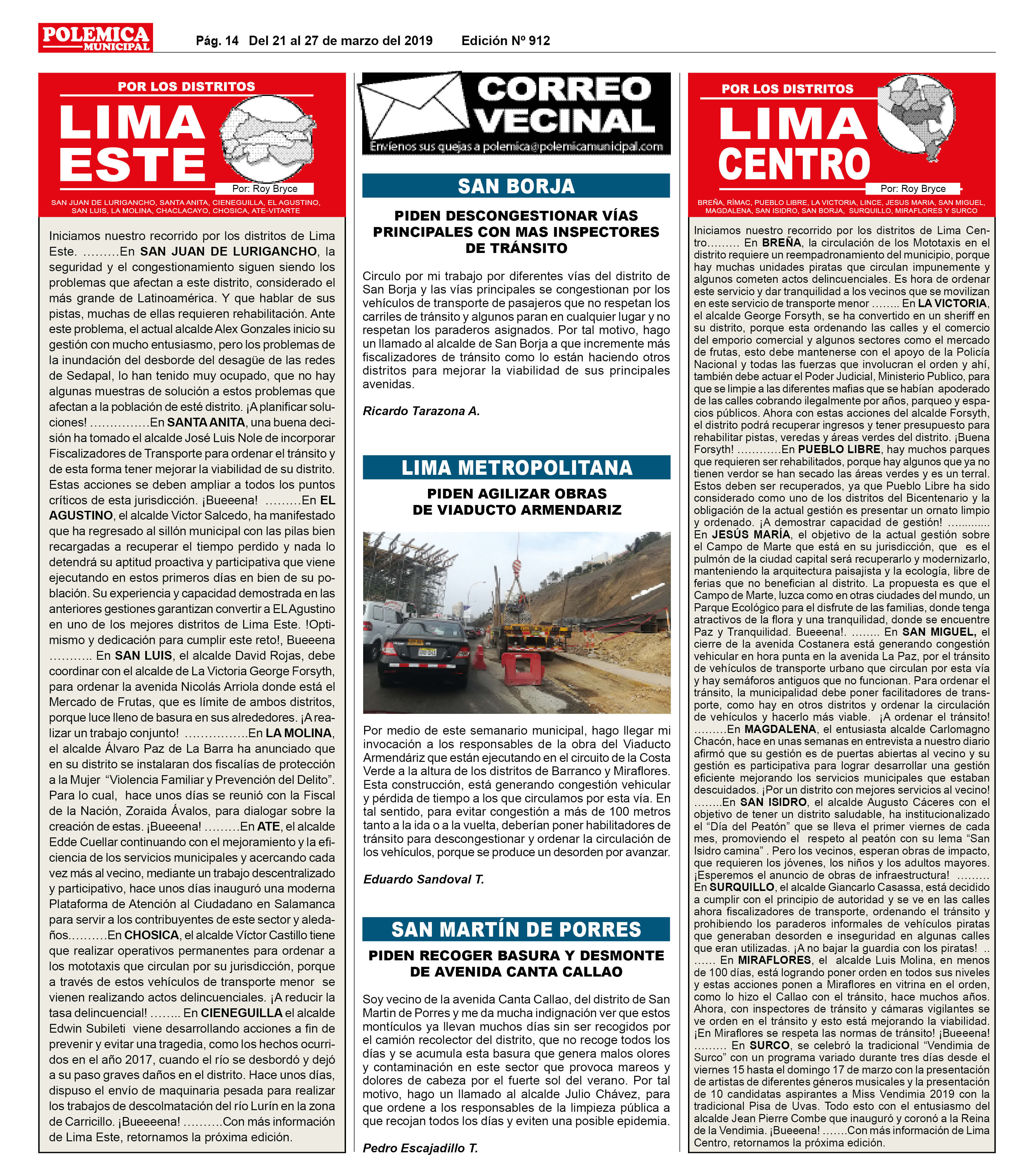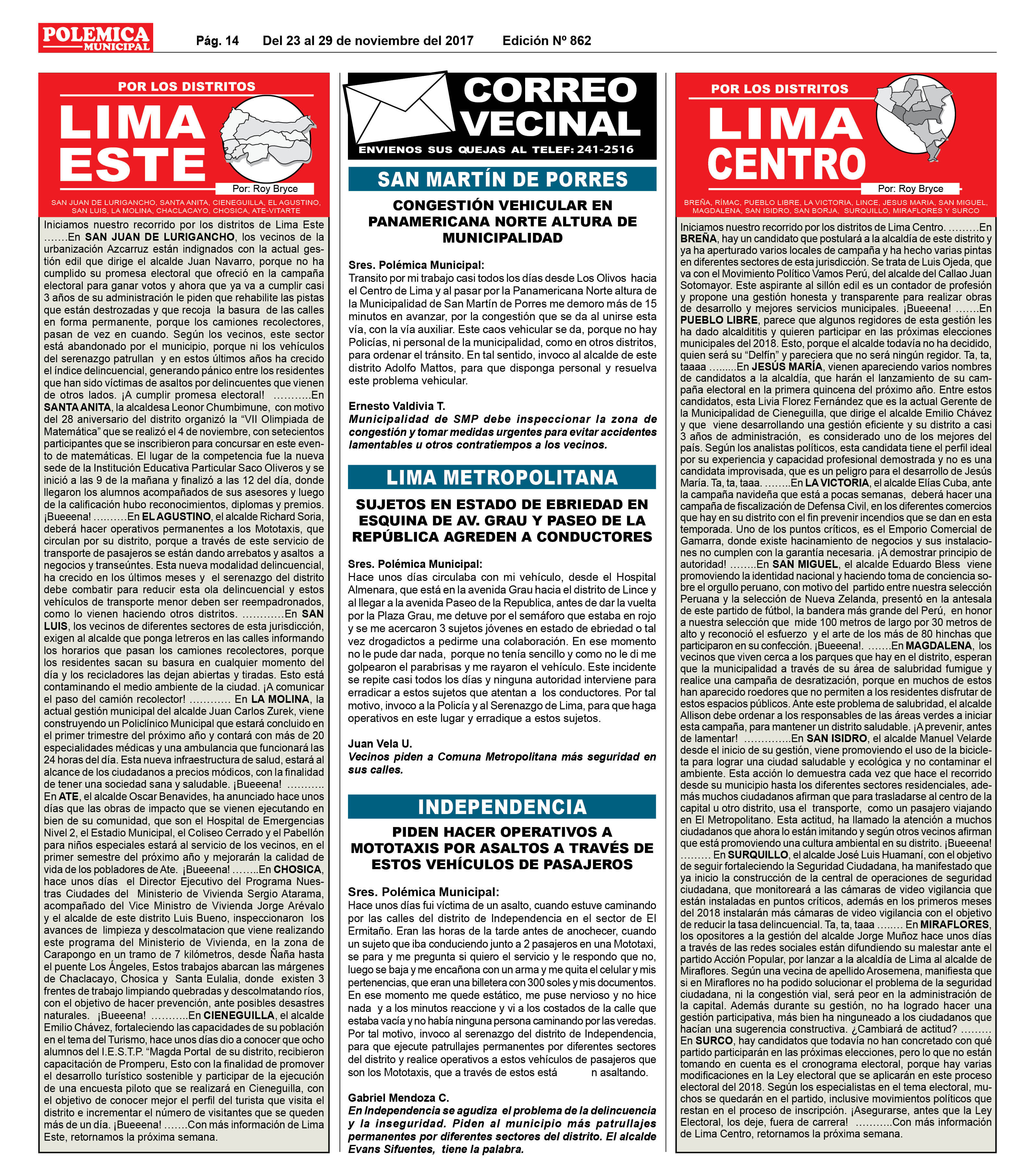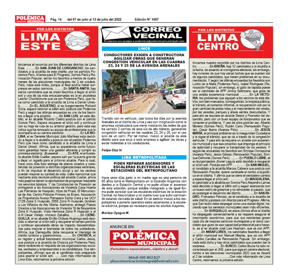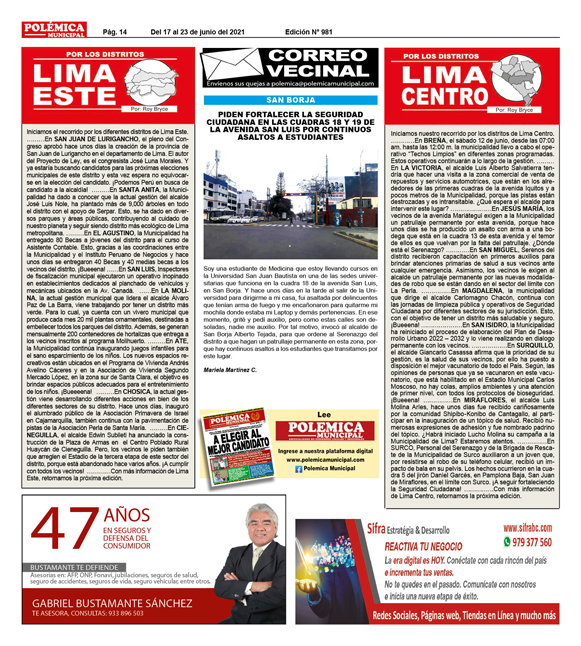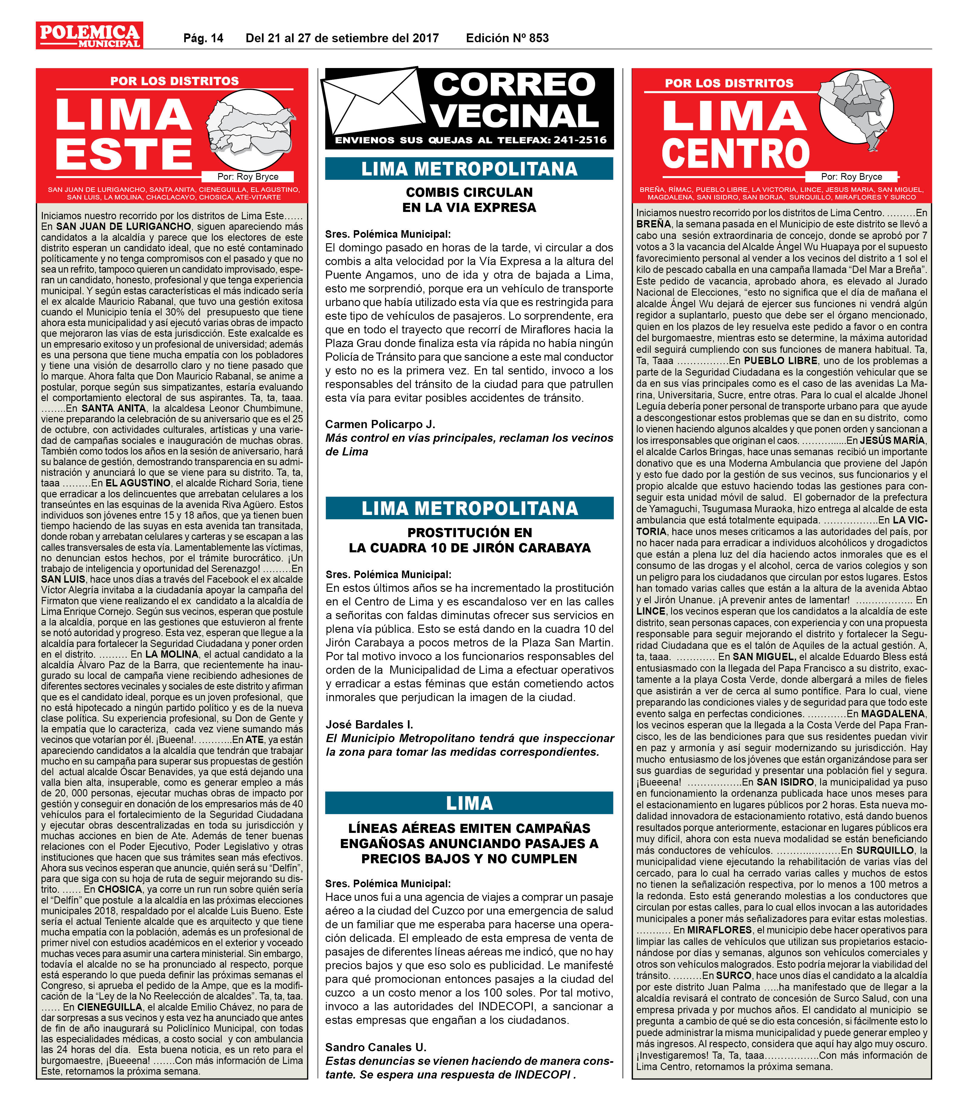 EDICION Nº 763. LIMA CENTRO, LIMA ESTE Y CORREO VECINAL