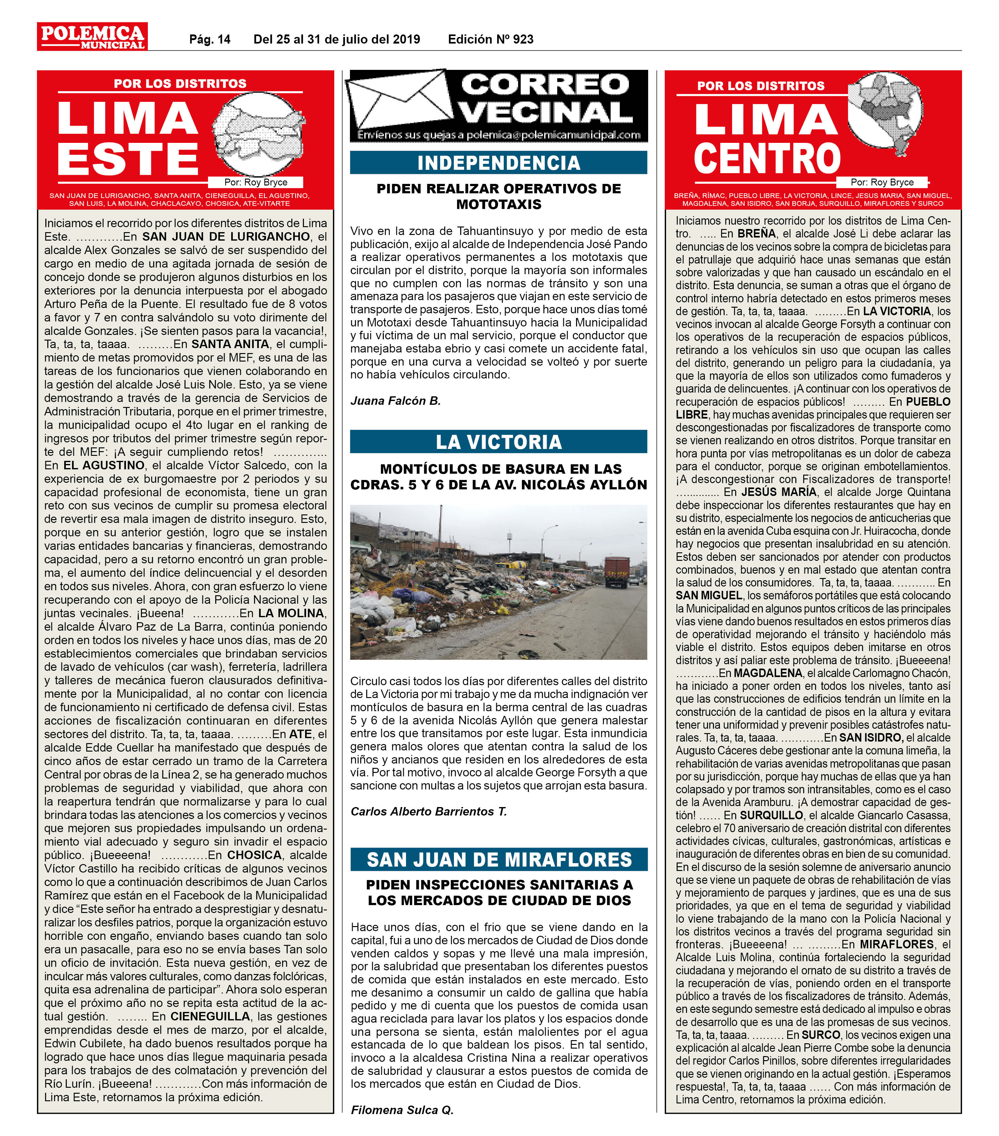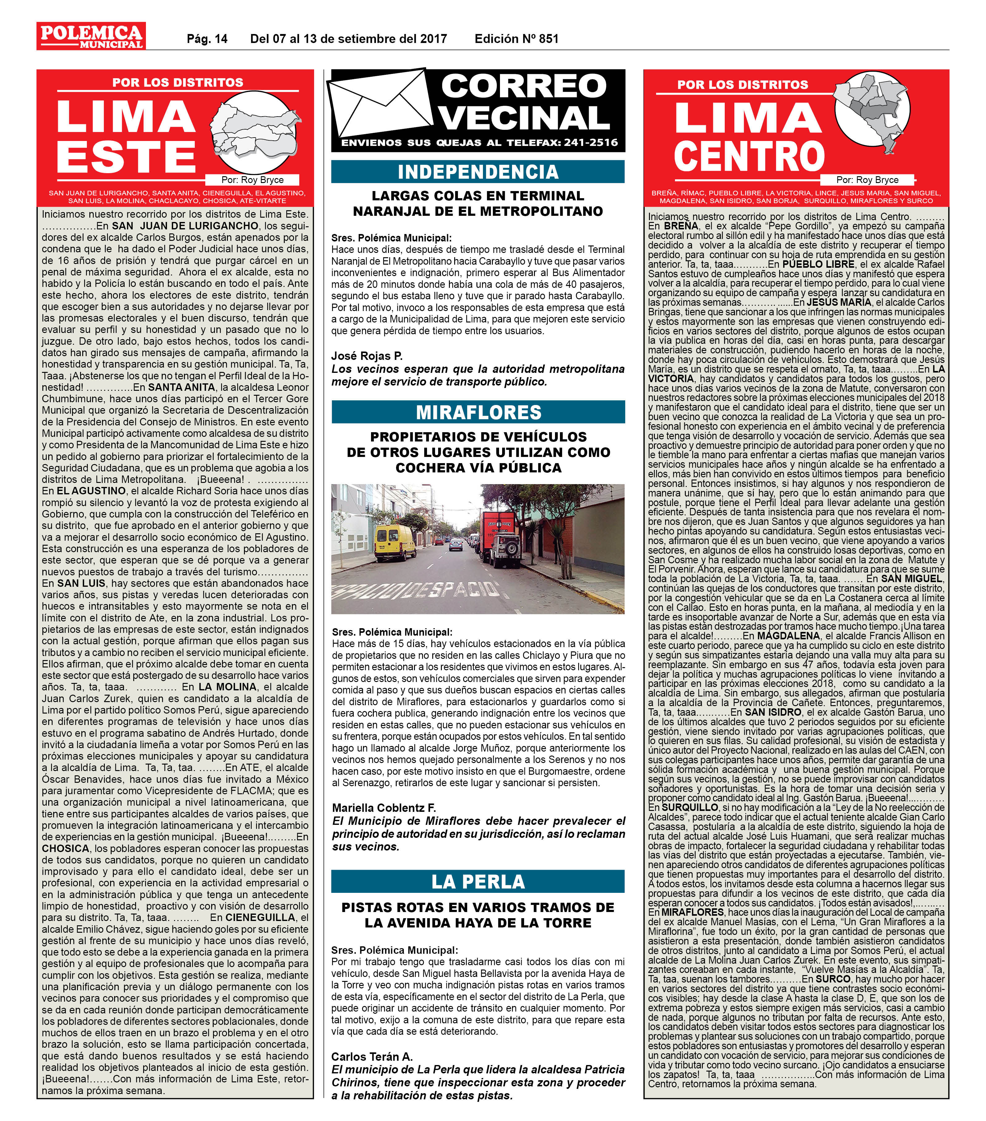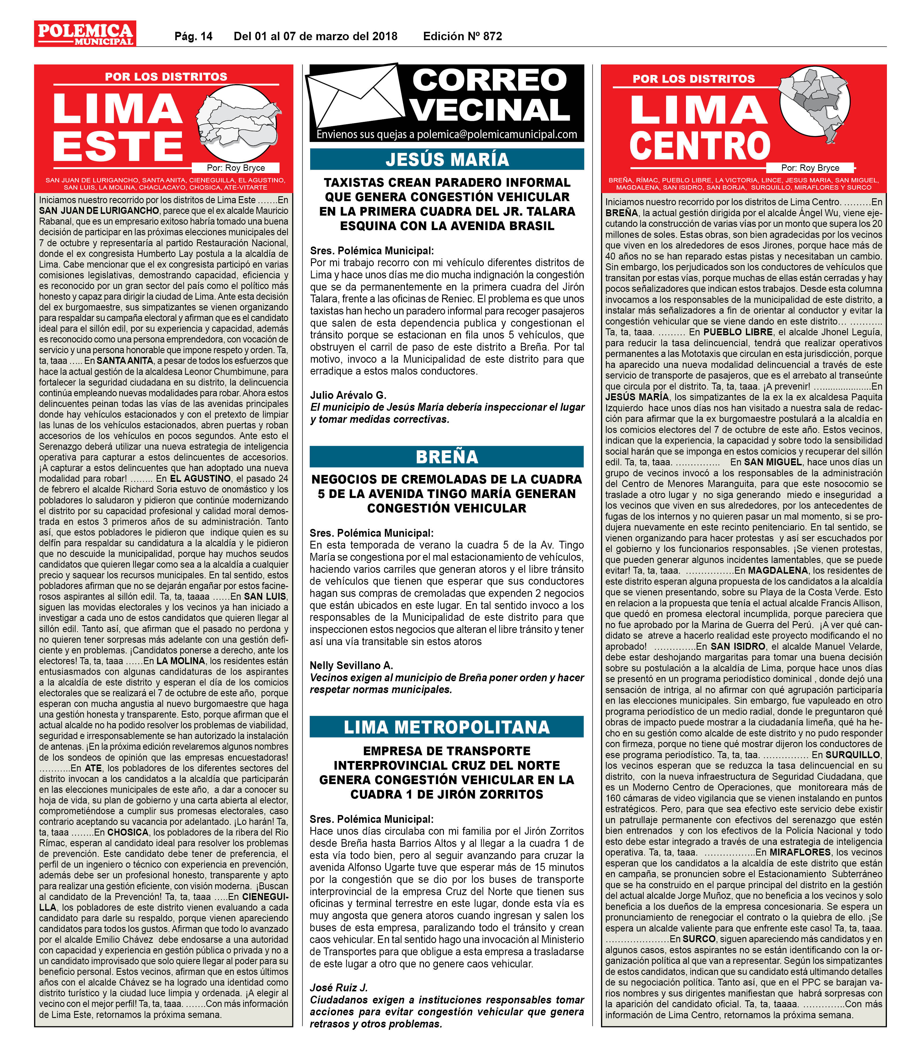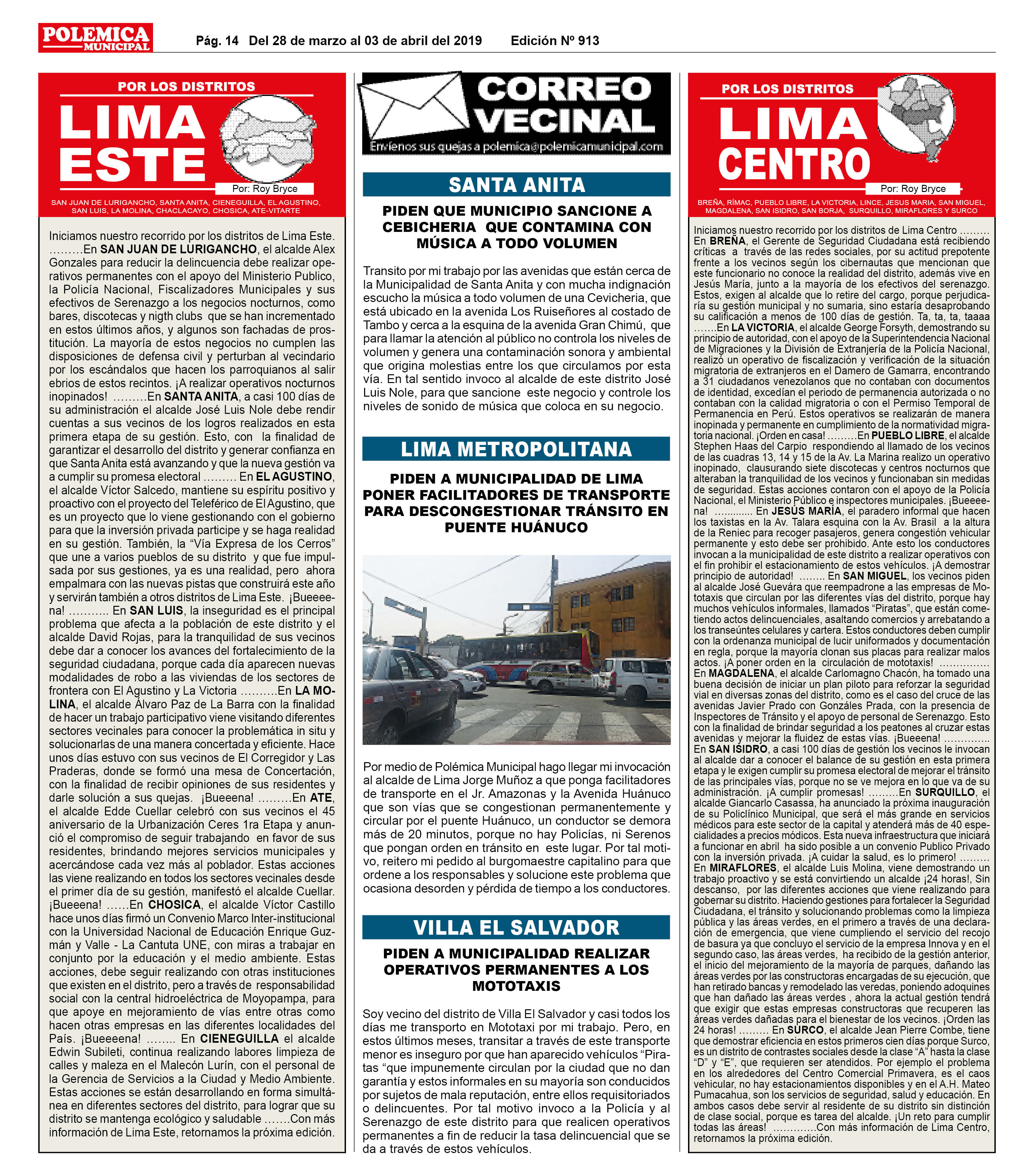 EDICION Nº 763. LIMA CENTRO, LIMA ESTE Y CORREO VECINAL