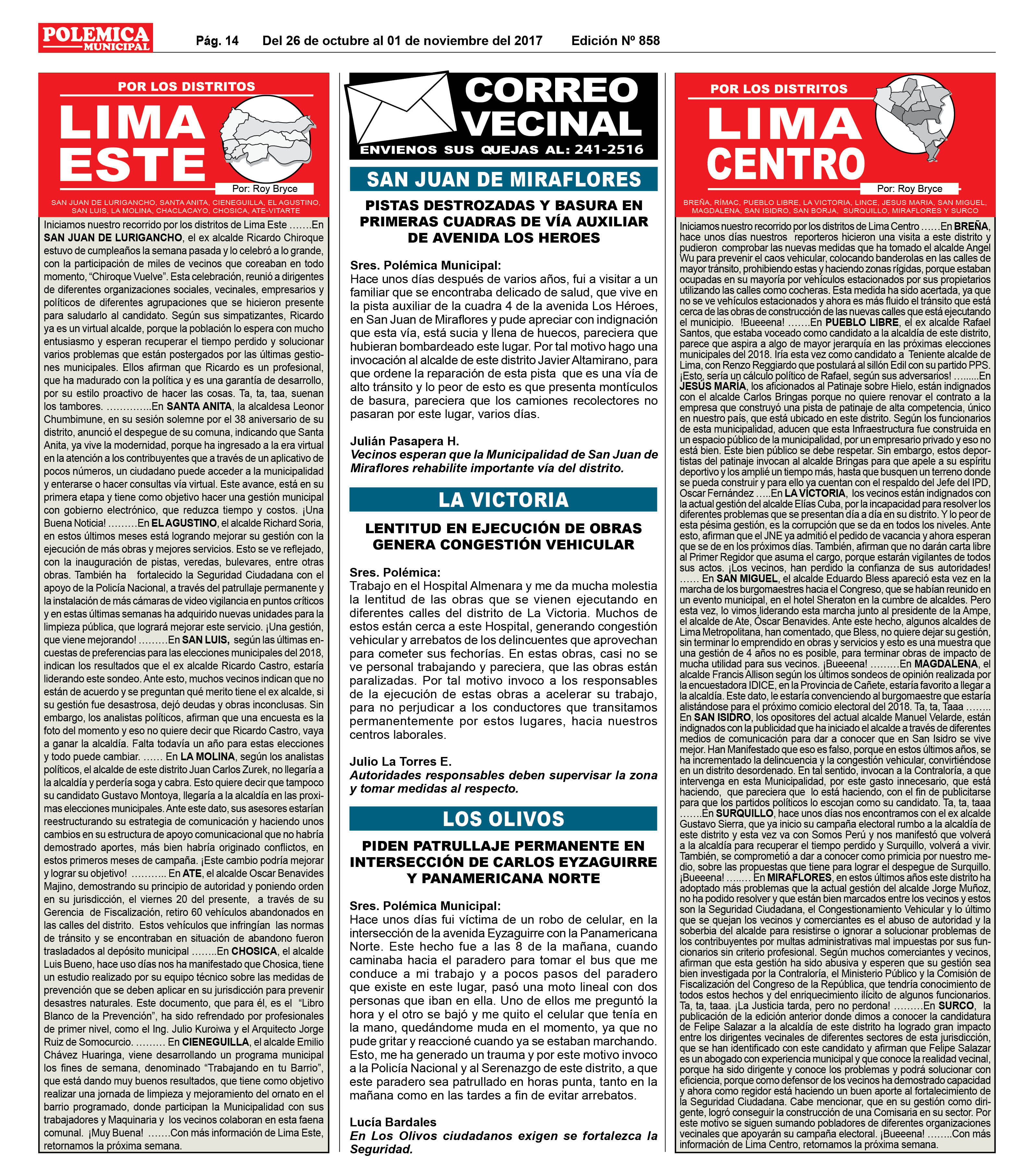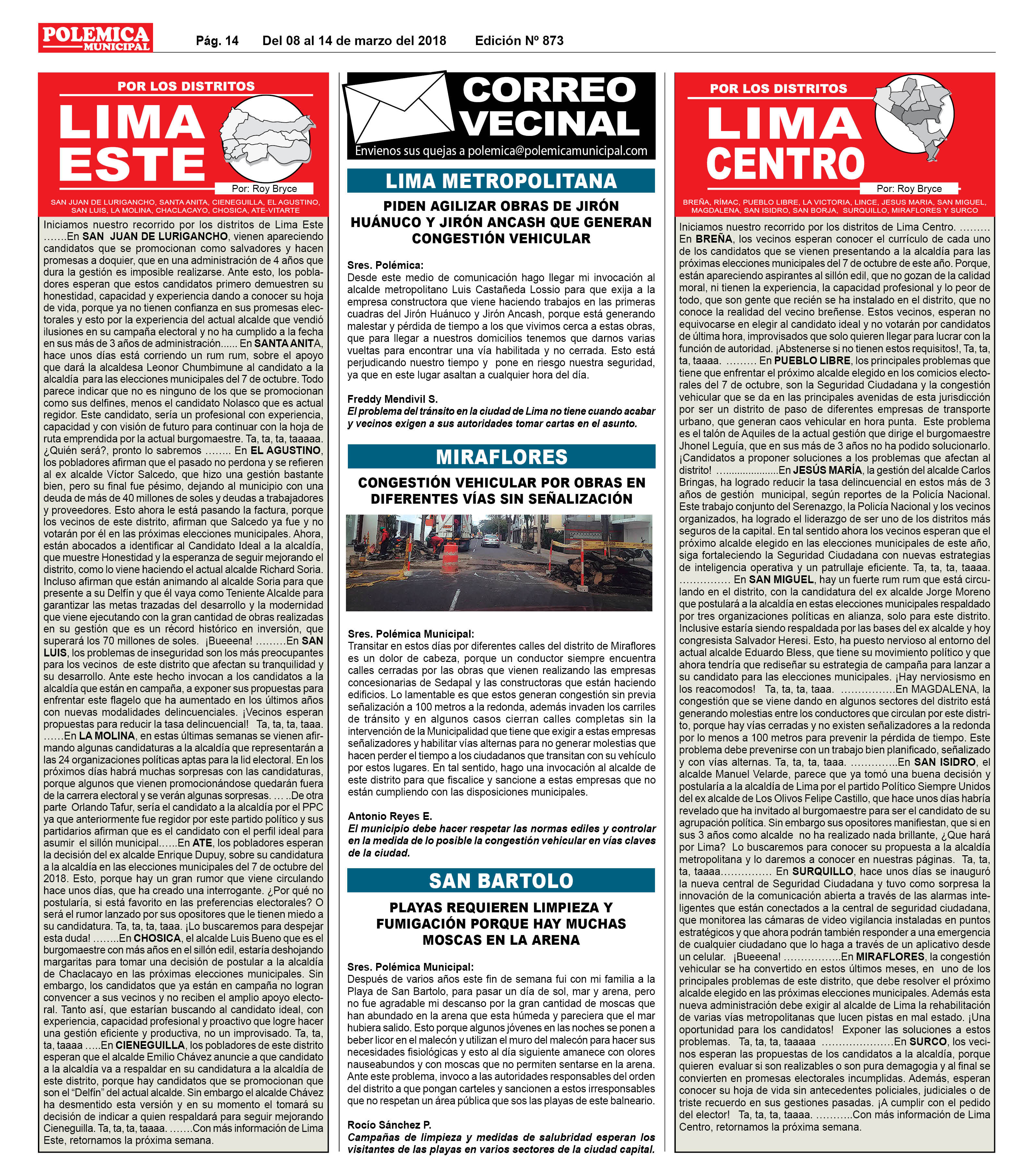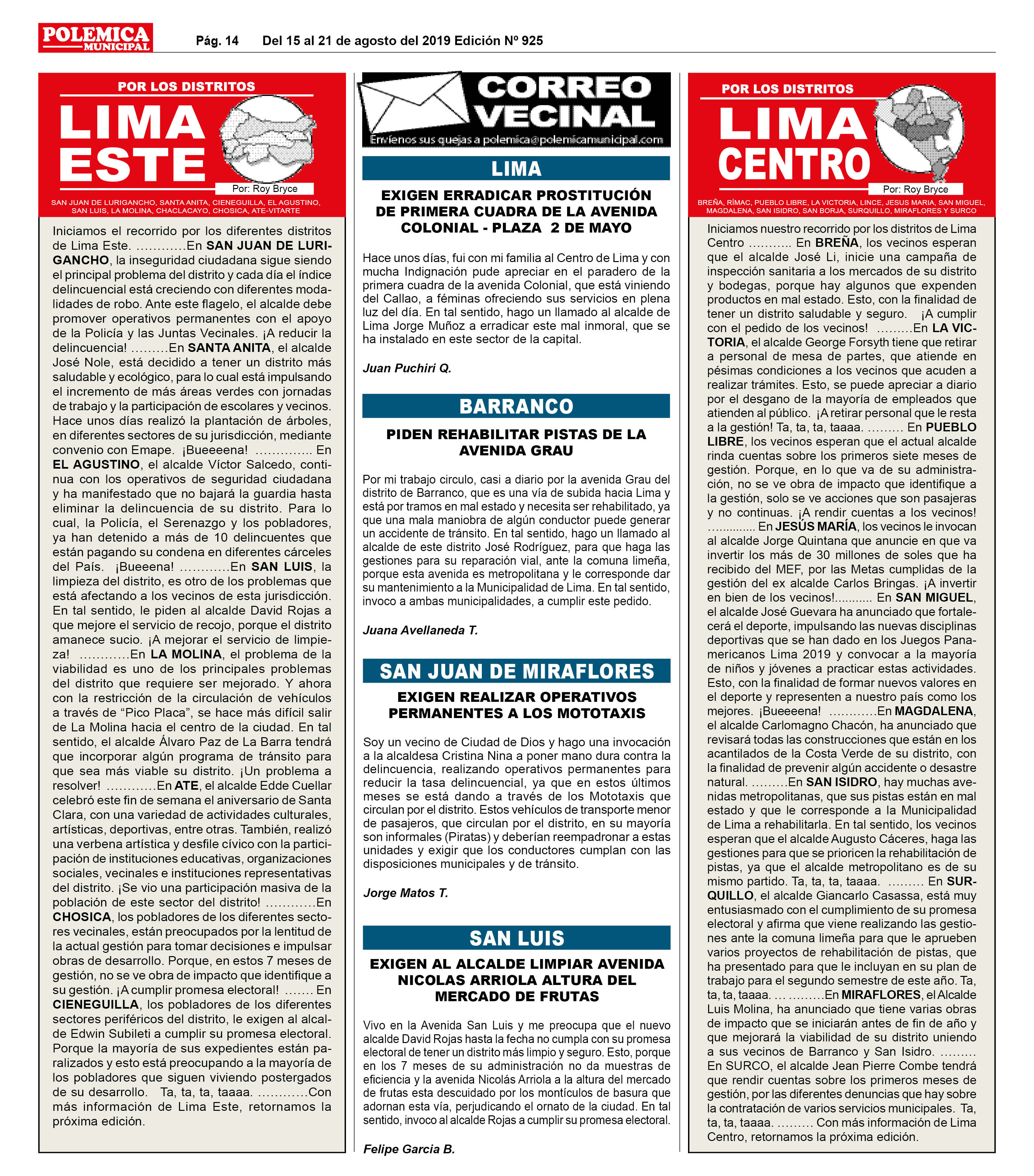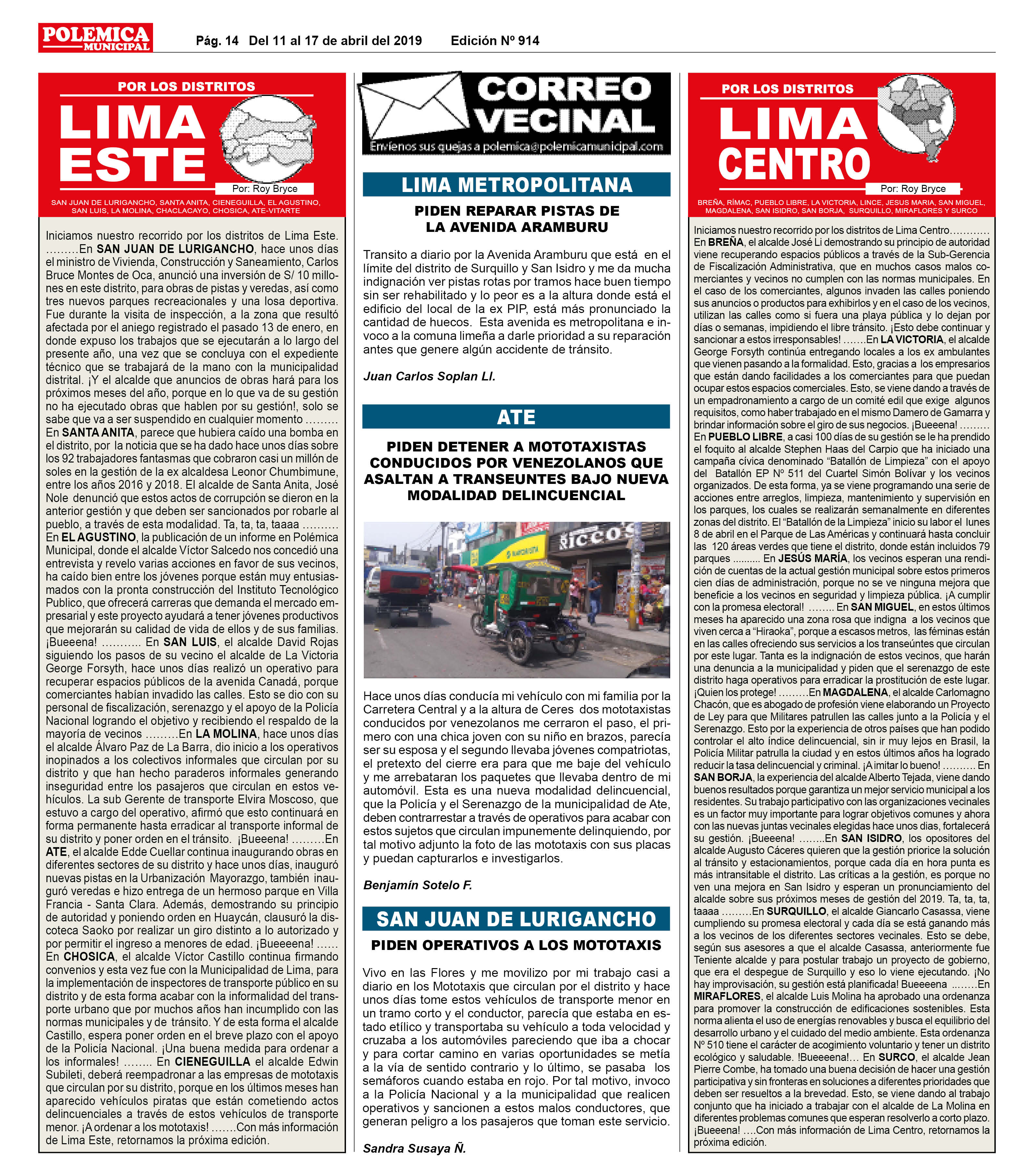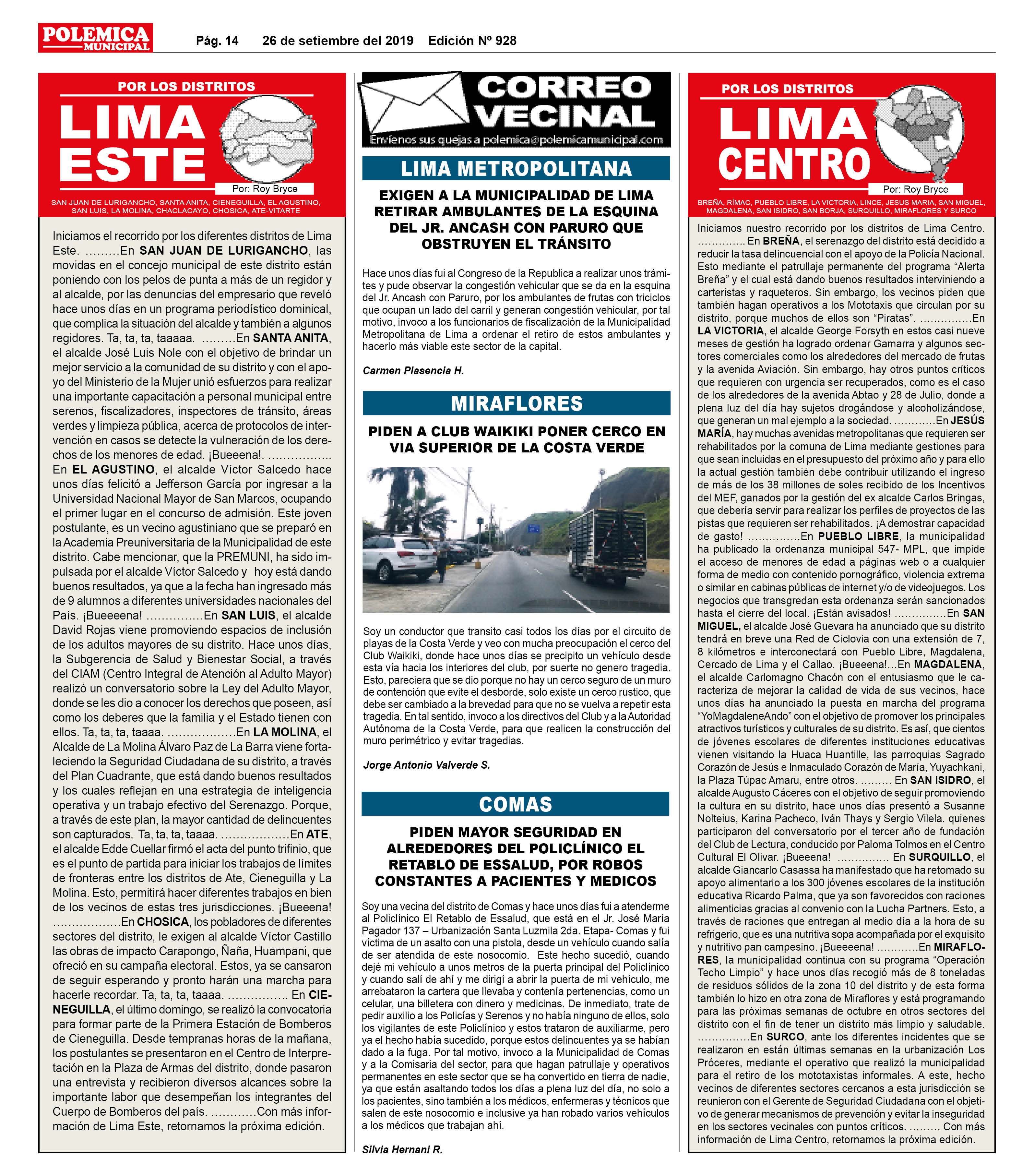 EDICION Nº 763. LIMA CENTRO, LIMA ESTE Y CORREO VECINAL