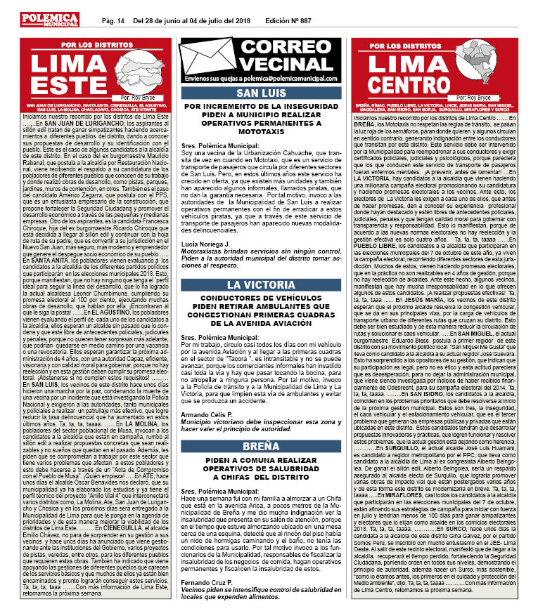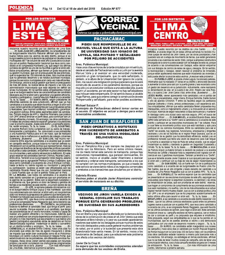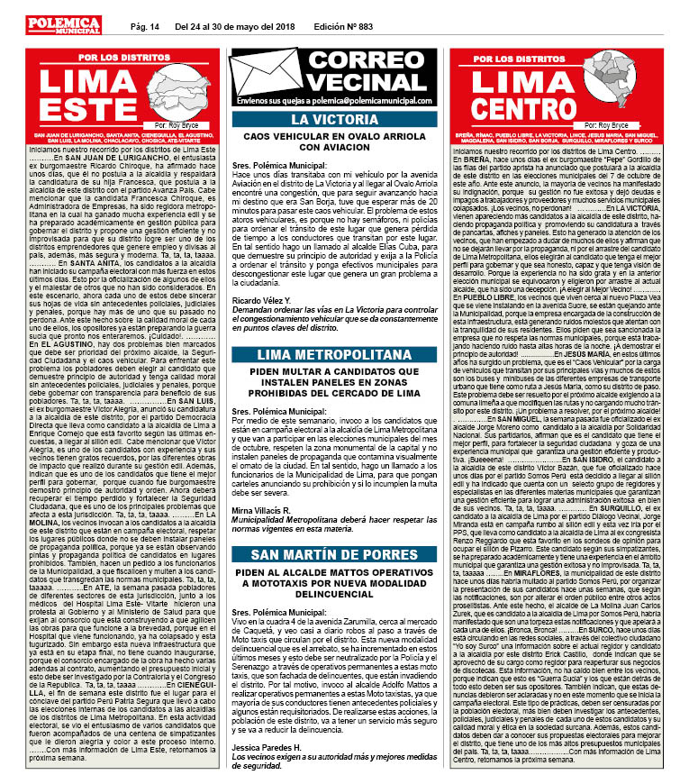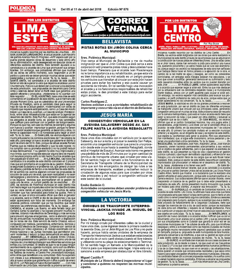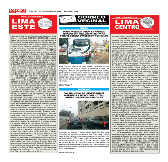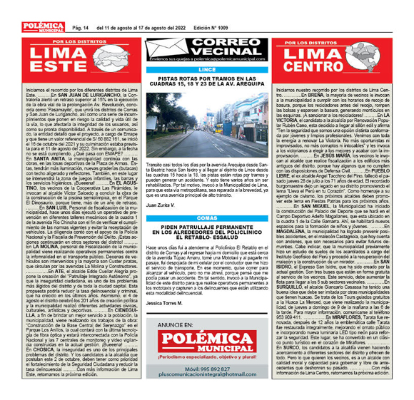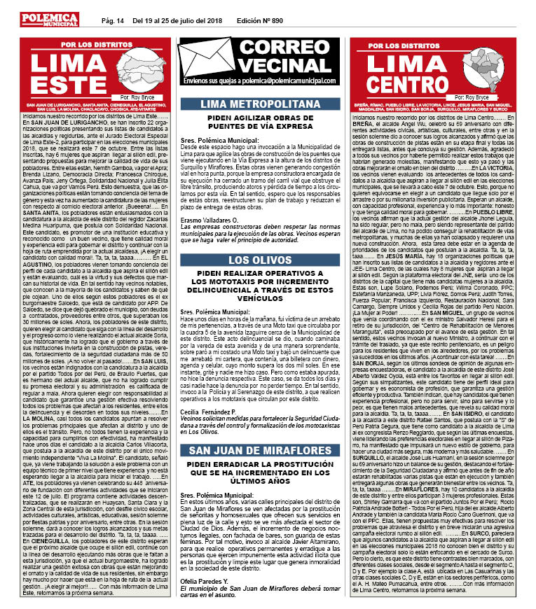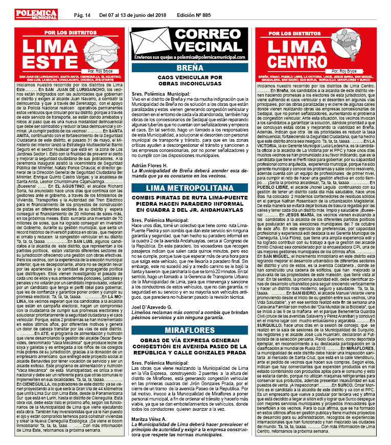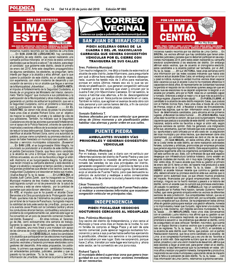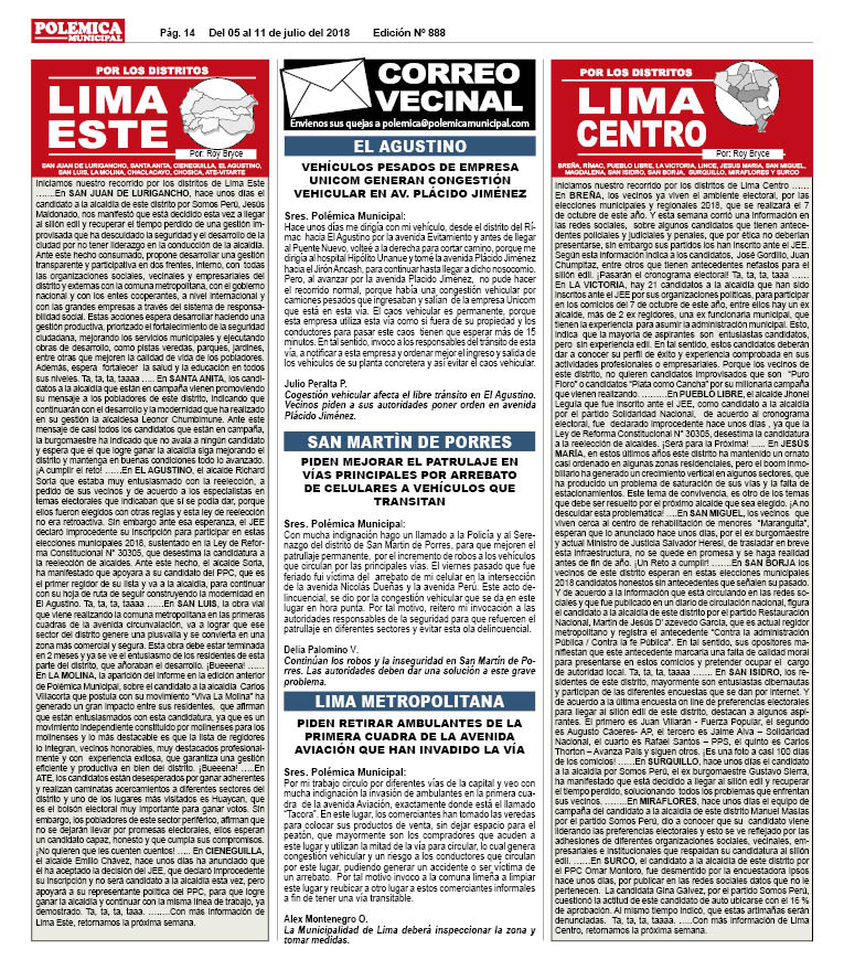 EDICION Nº 886. LIMA CENTRO, LIMA ESTE Y CORREO VECINAL