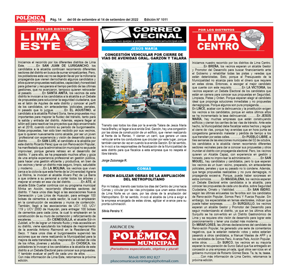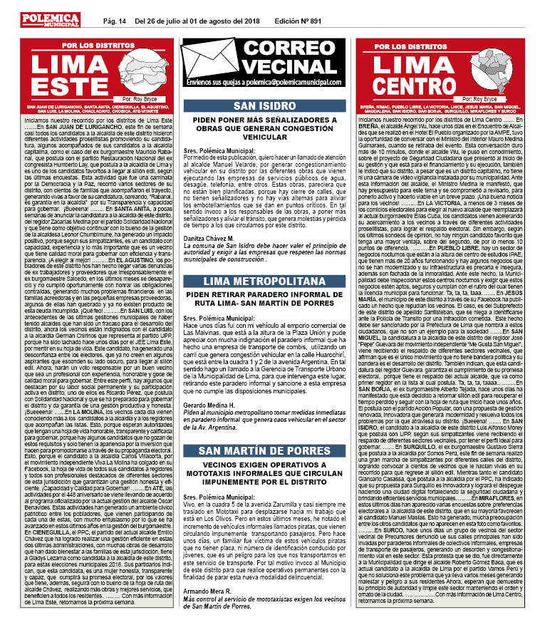 EDICION Nº 911. LIMA CENTRO, LIMA ESTE Y CORREO VECINAL