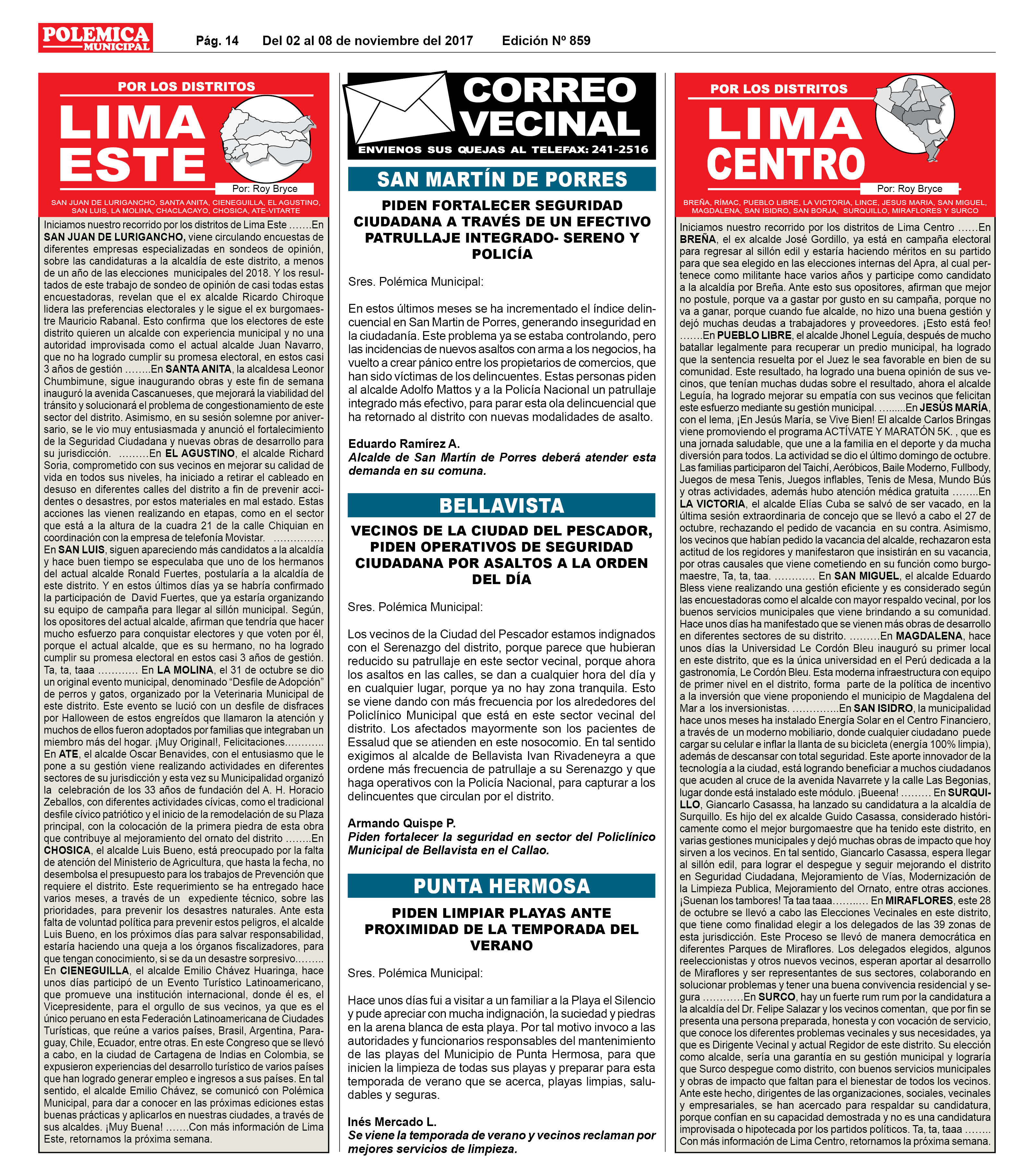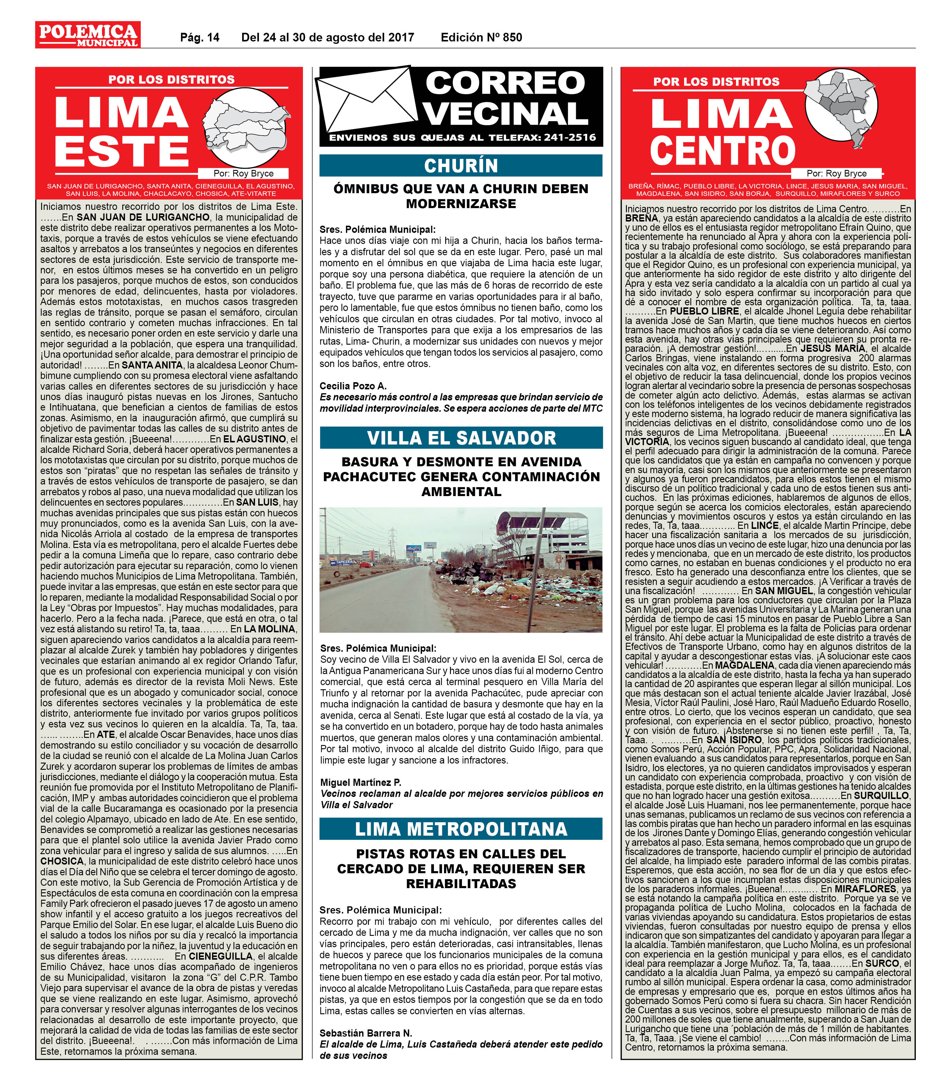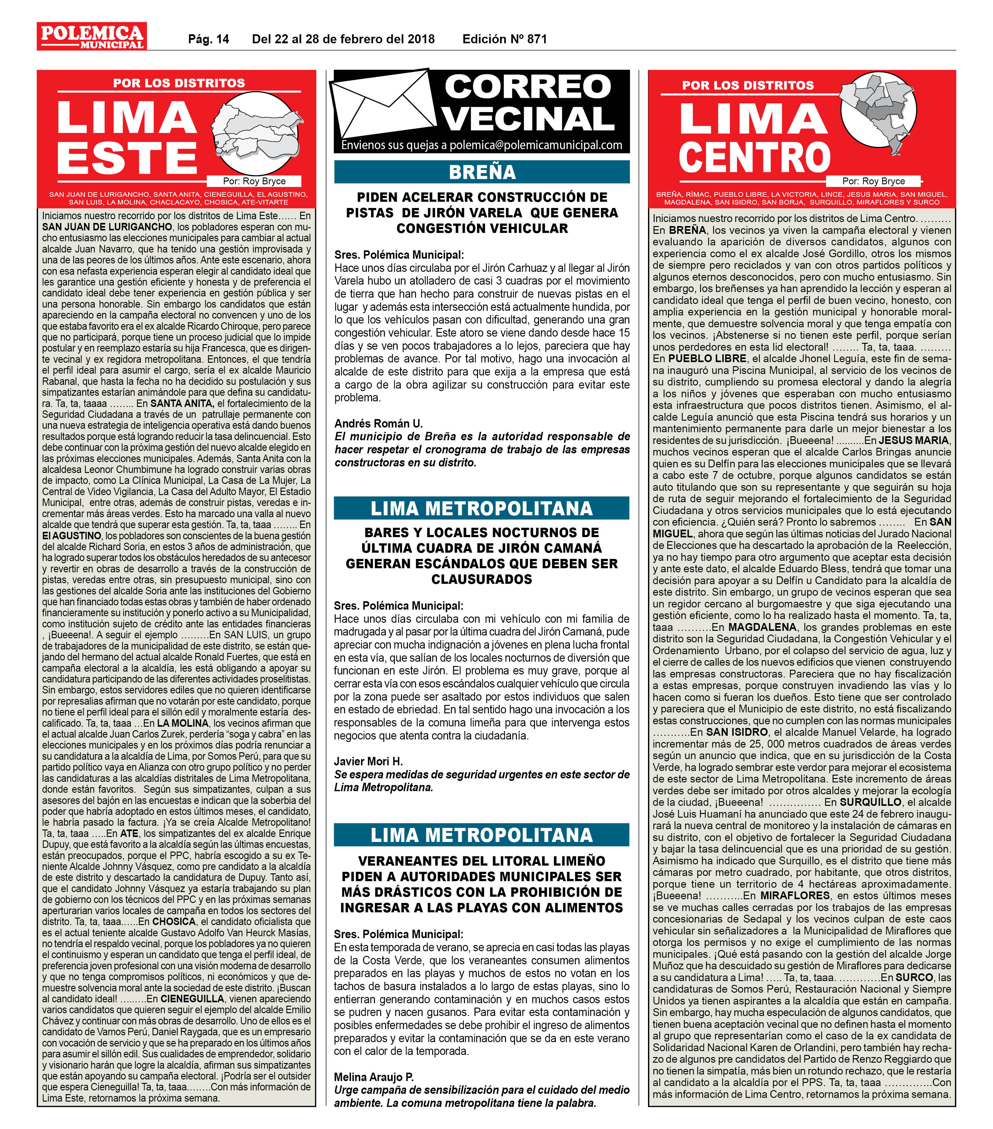 EDICION Nº 916. LIMA CENTRO, LIMA ESTE Y CORREO VECINAL
