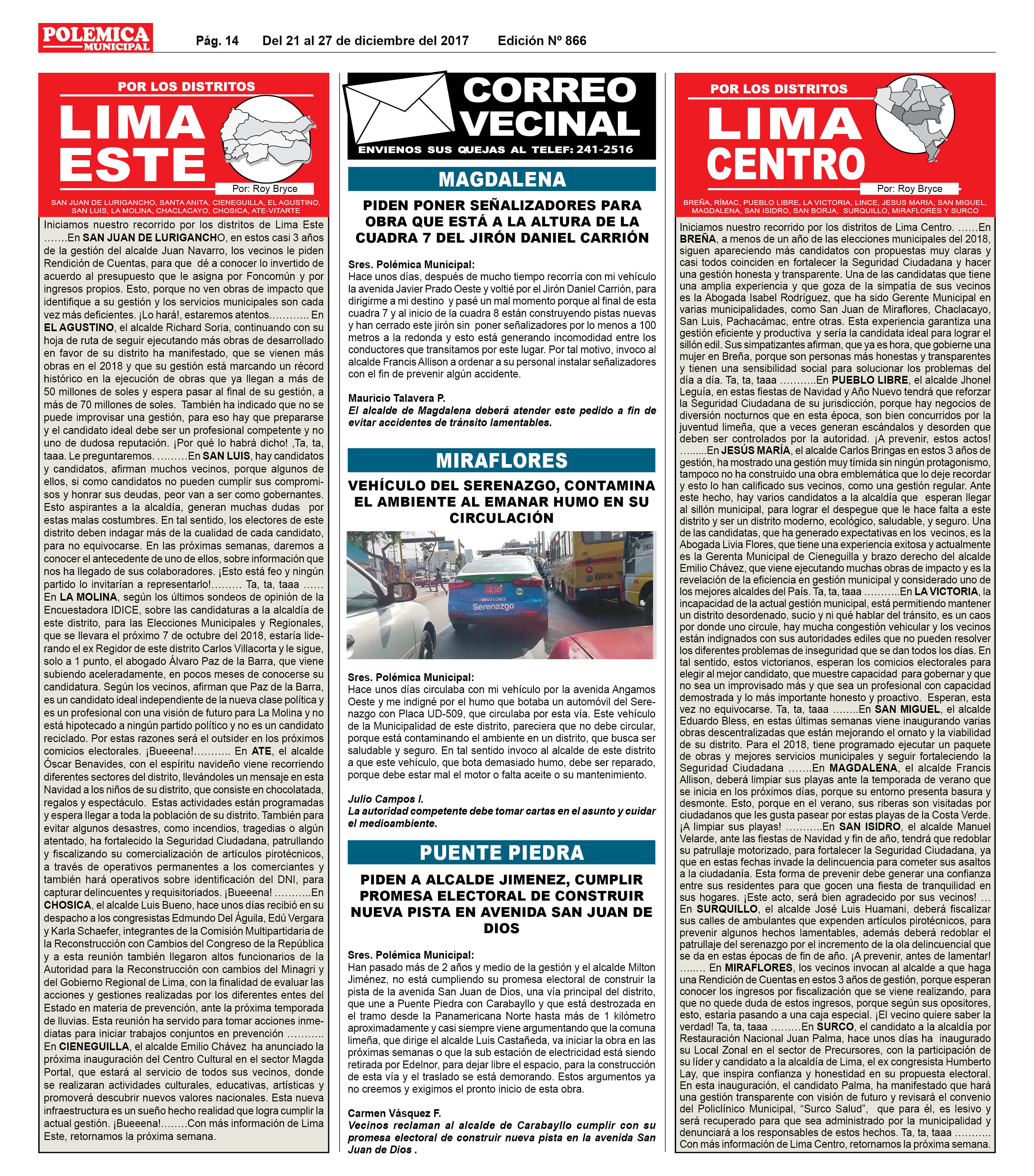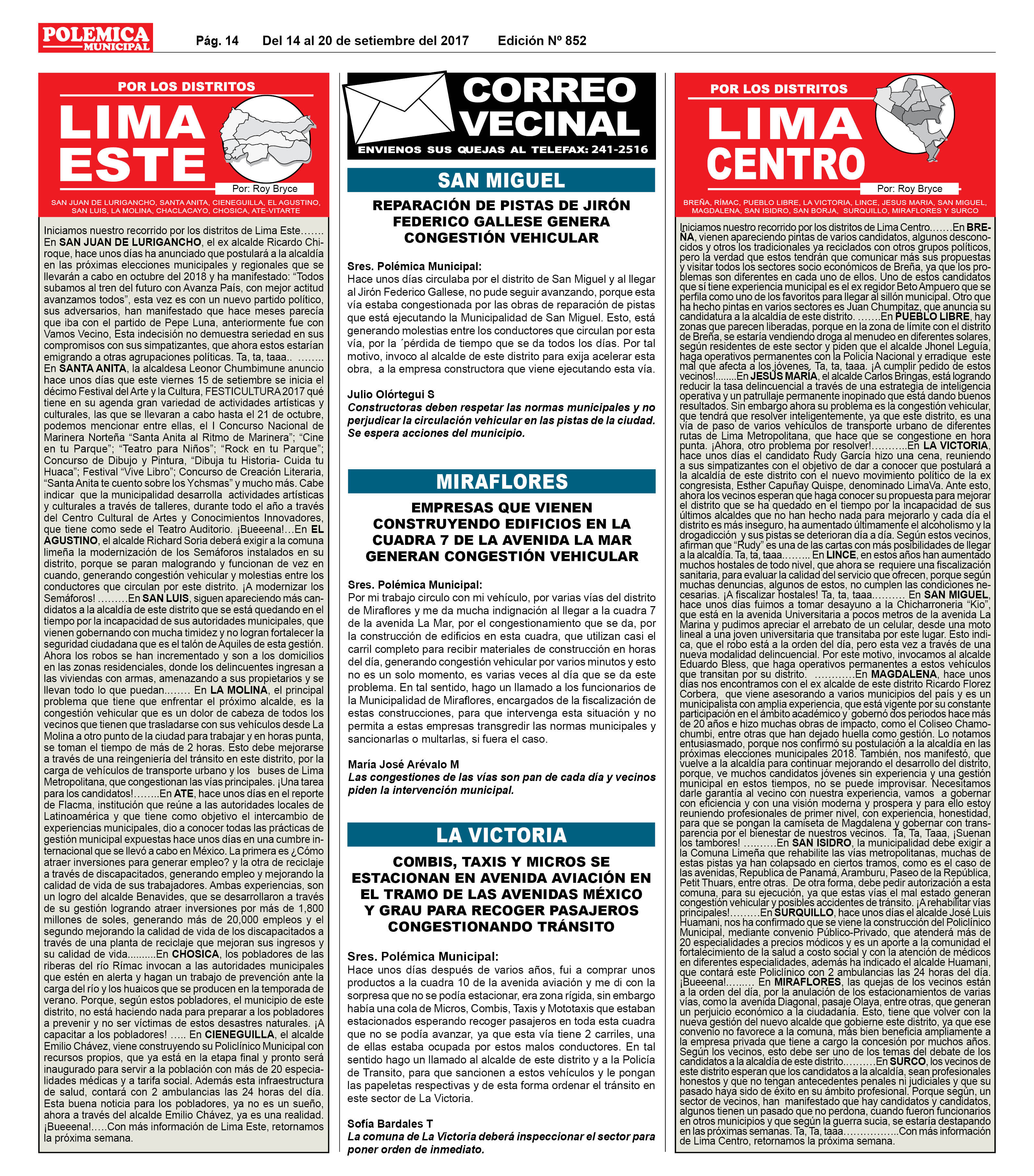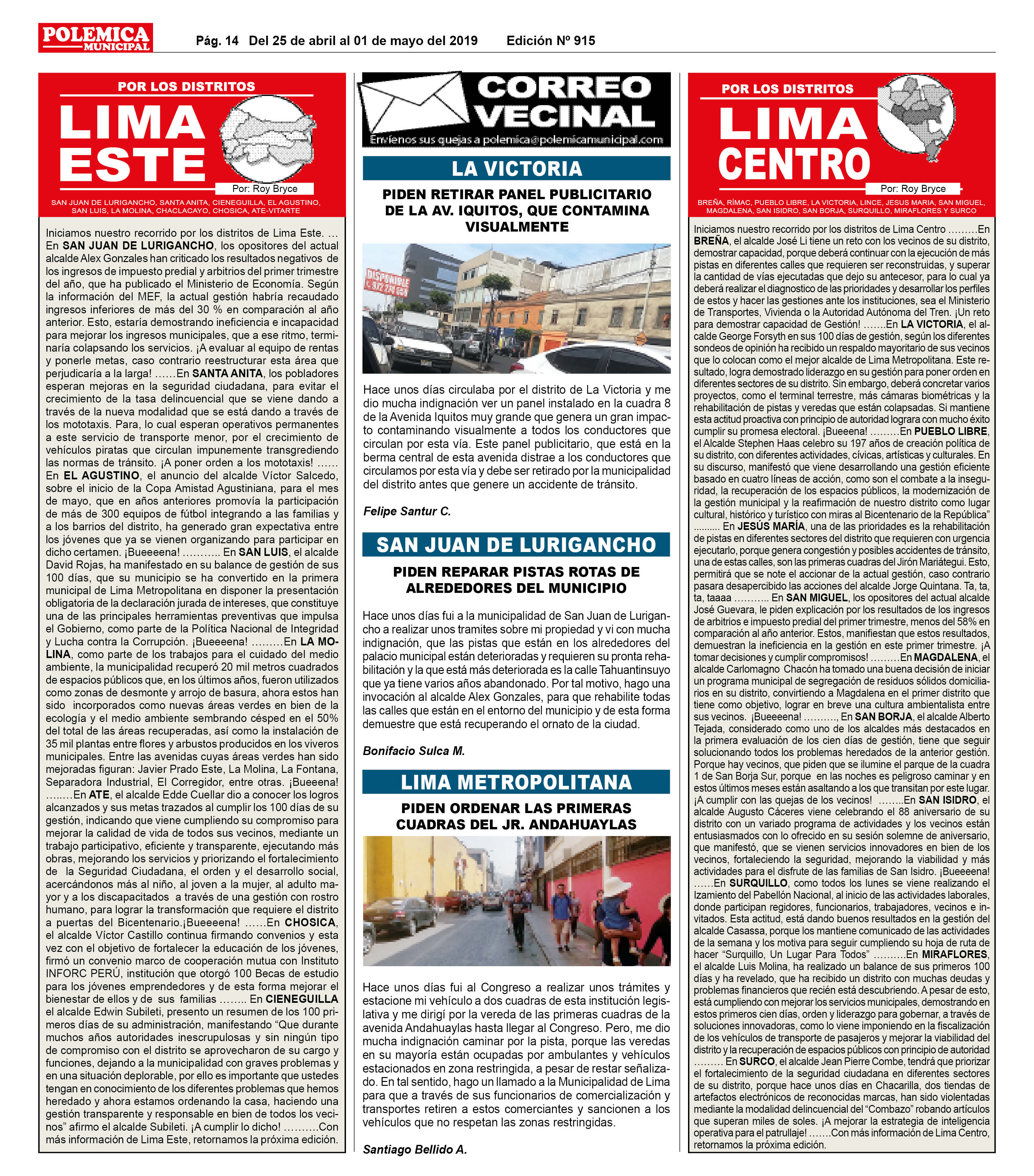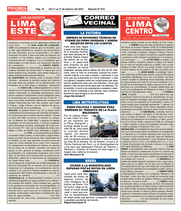 EDICION Nº 761. LIMA CENTRO, LIMA ESTE Y CORREO VECINAL
