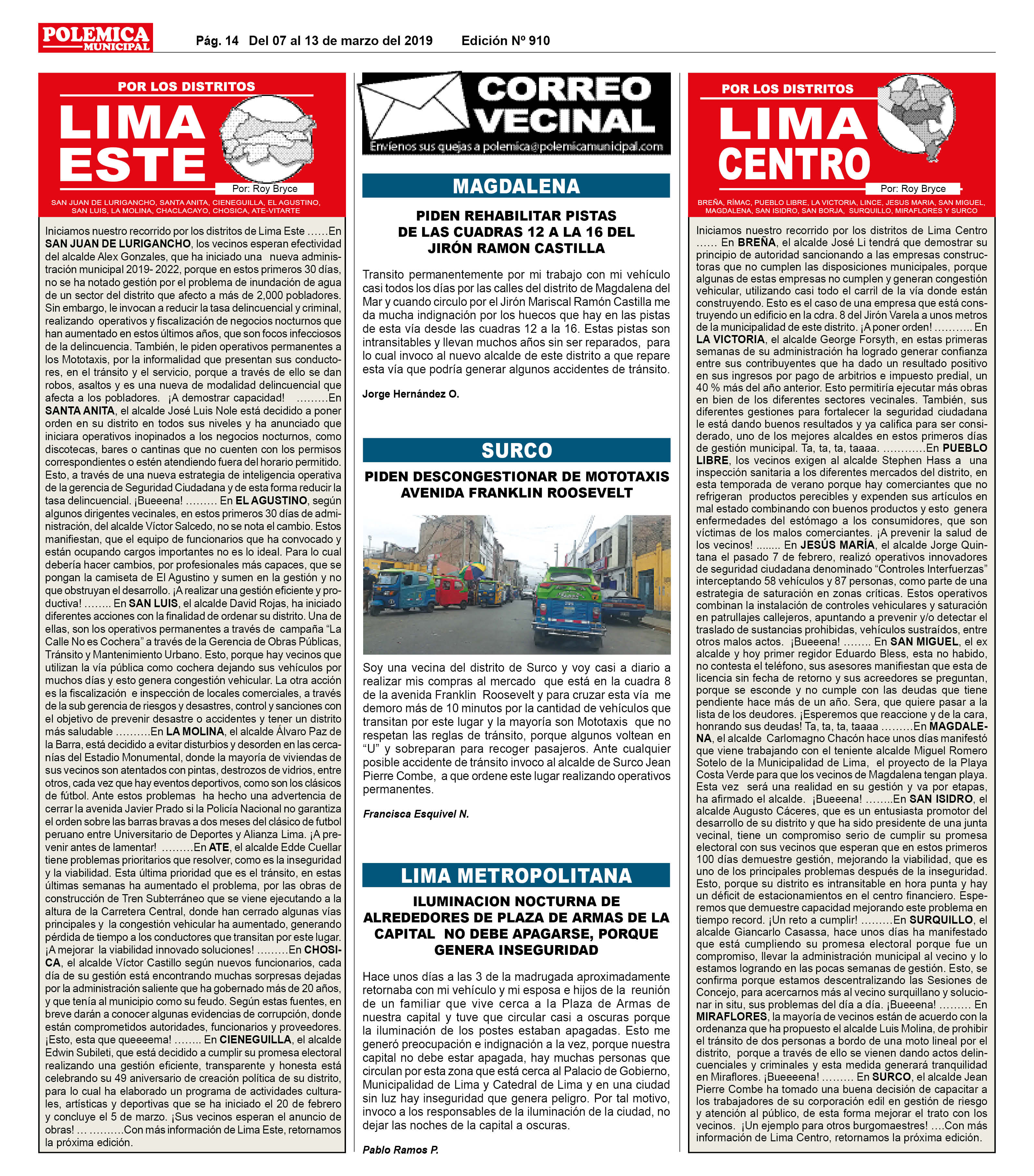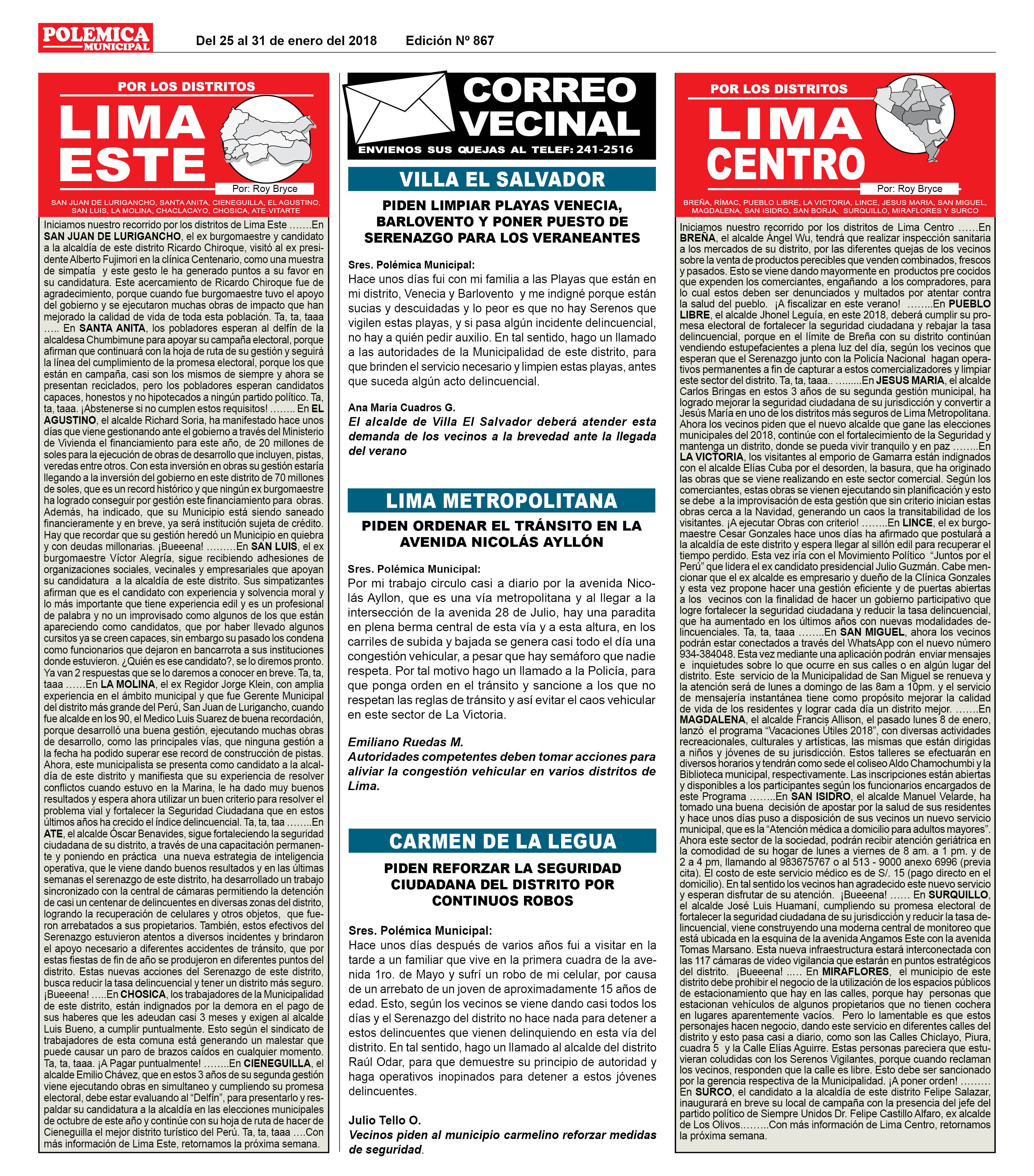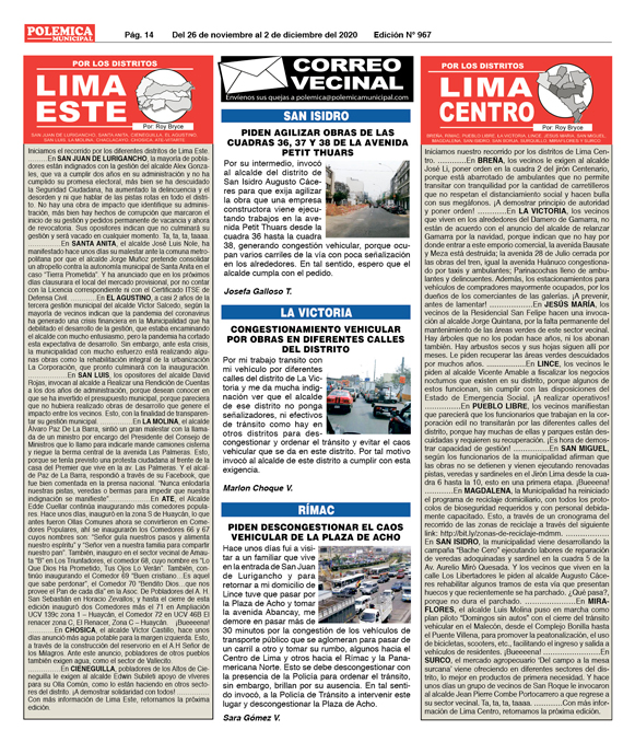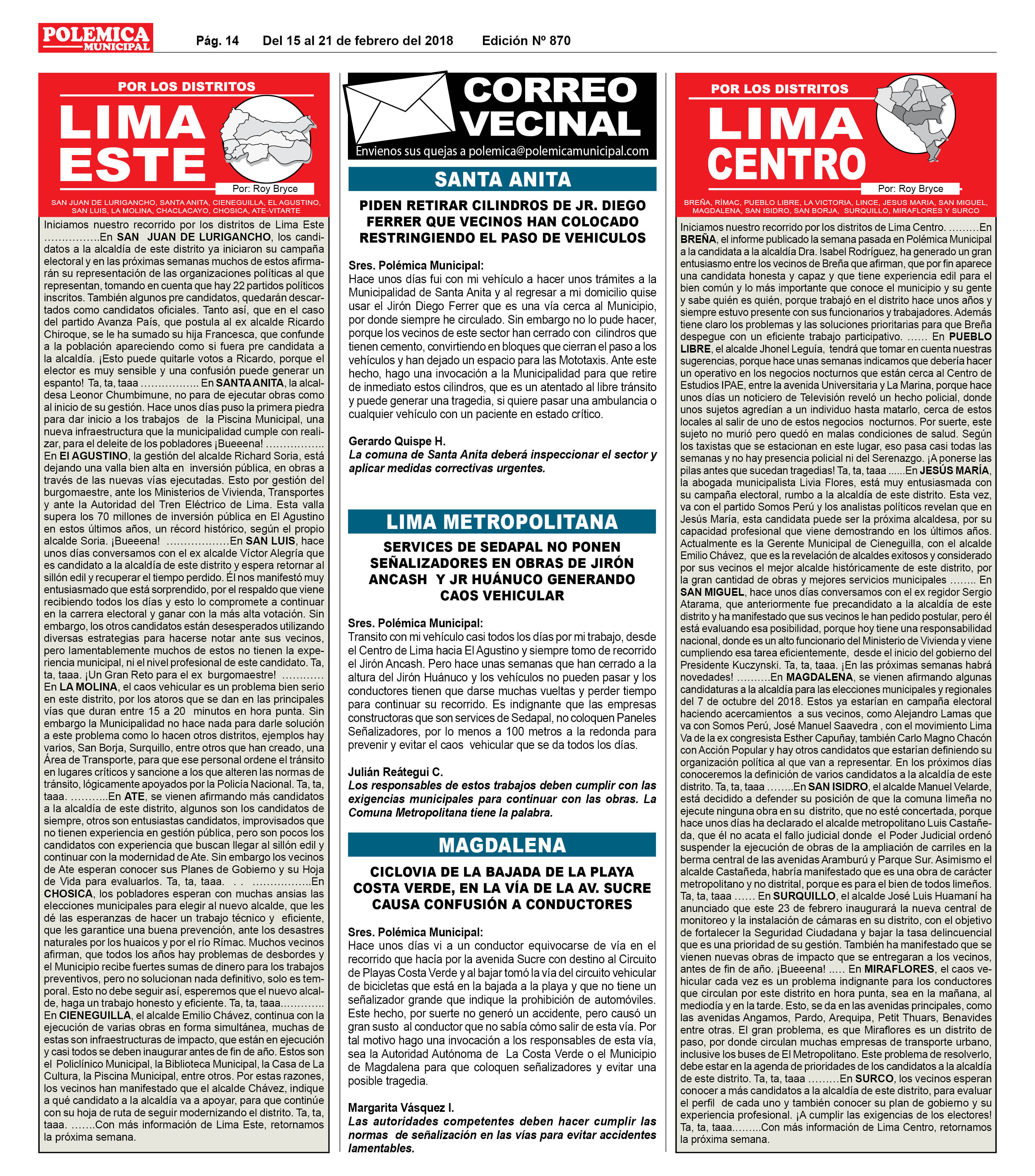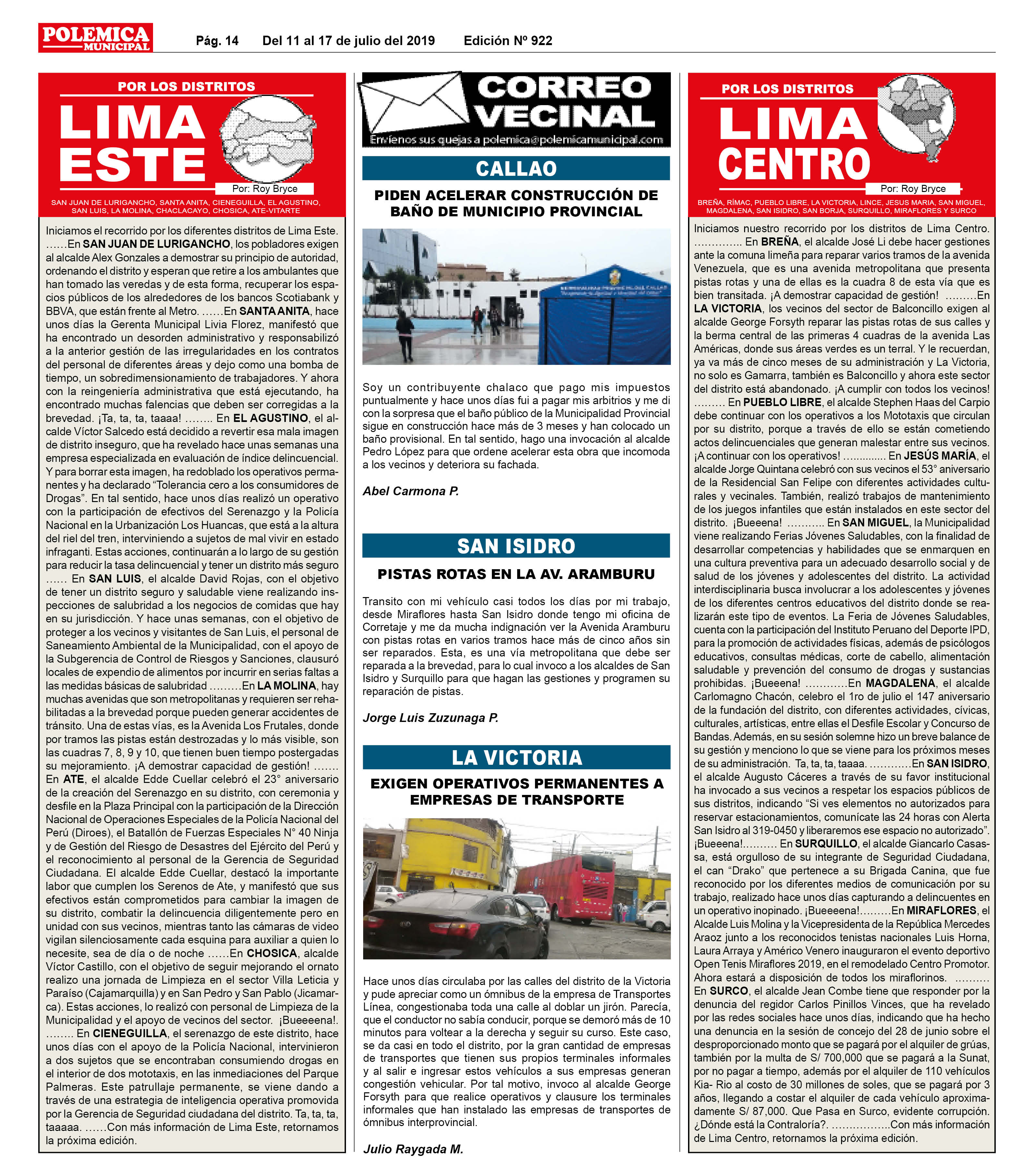 EDICION Nº 761. LIMA CENTRO, LIMA ESTE Y CORREO VECINAL