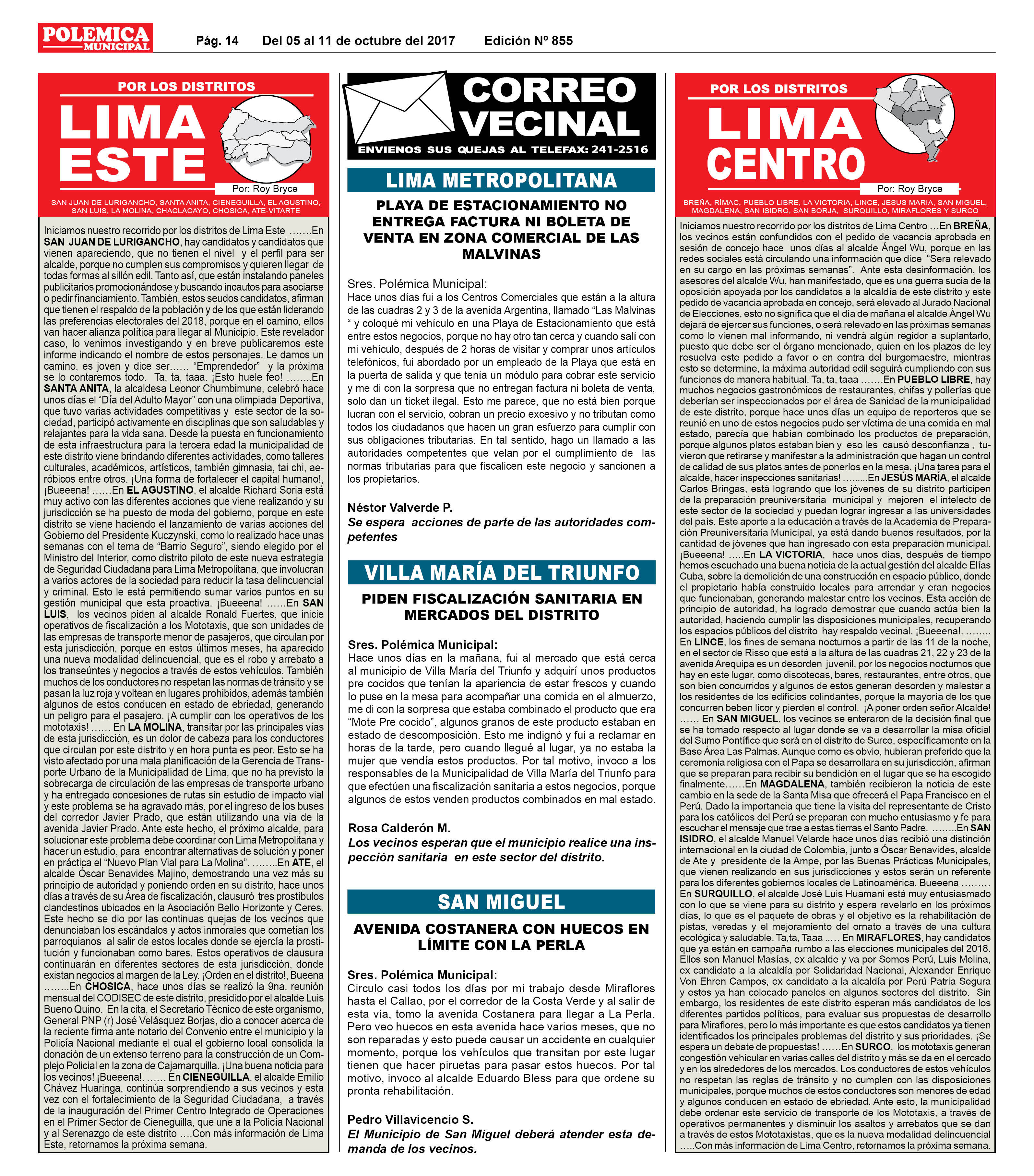 EDICION Nº 765. LIMA CENTRO, LIMA ESTE Y CORREO VECINAL