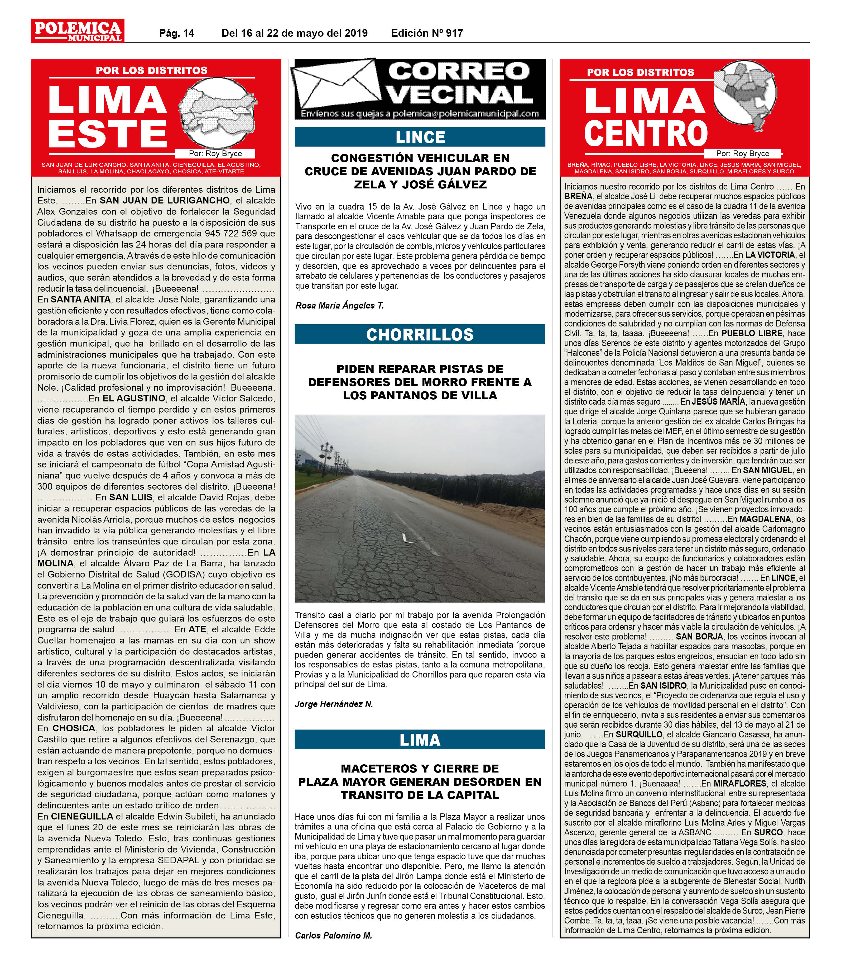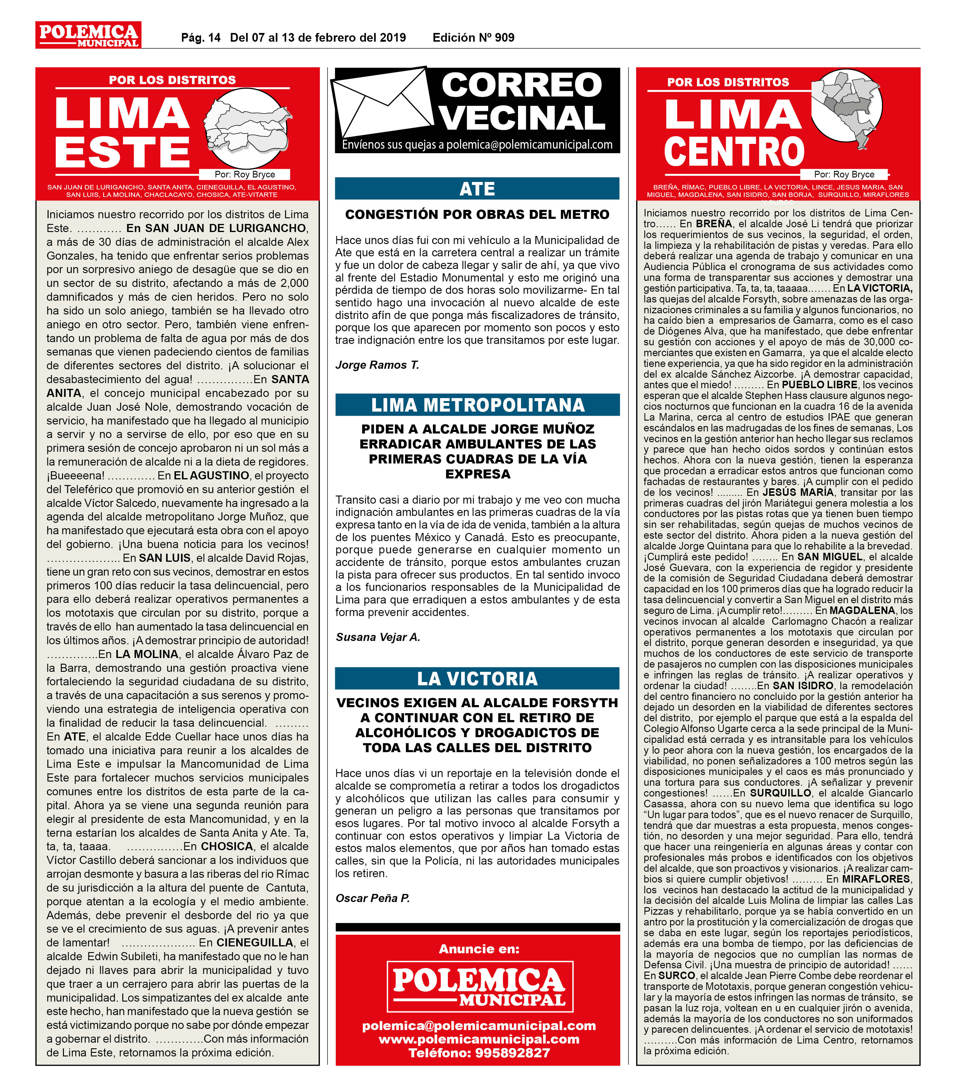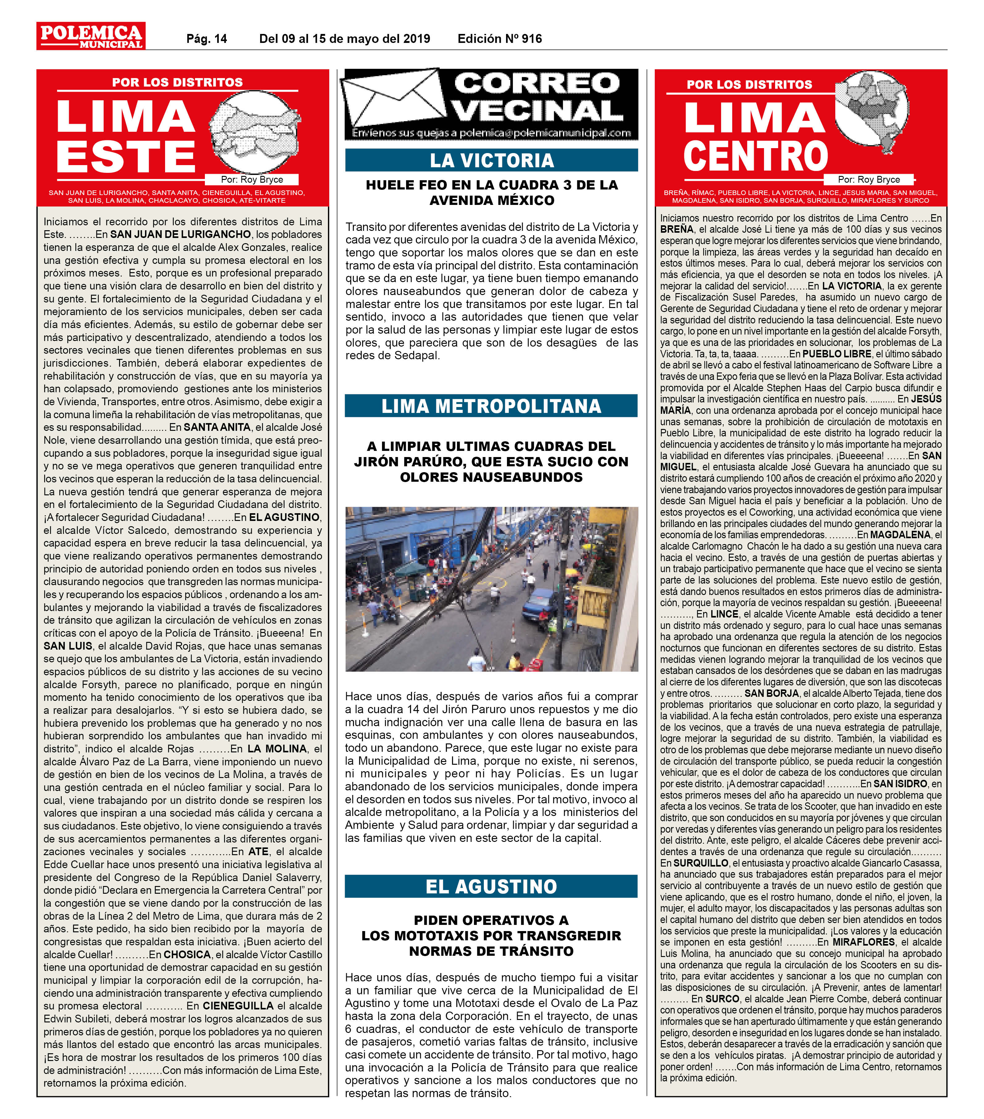EDICION Nº 915. LIMA CENTRO, LIMA ESTE Y CORREO VECINAL