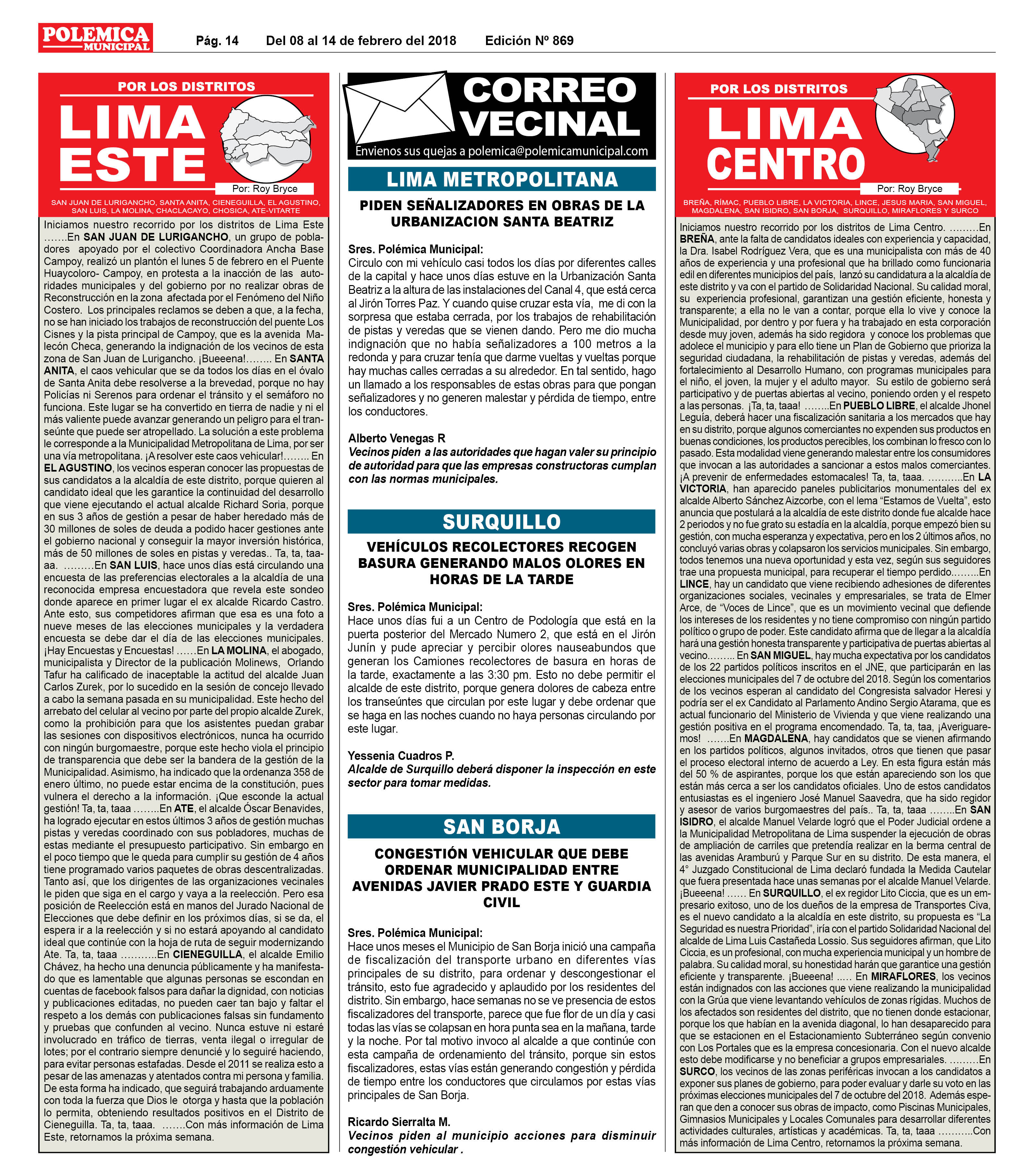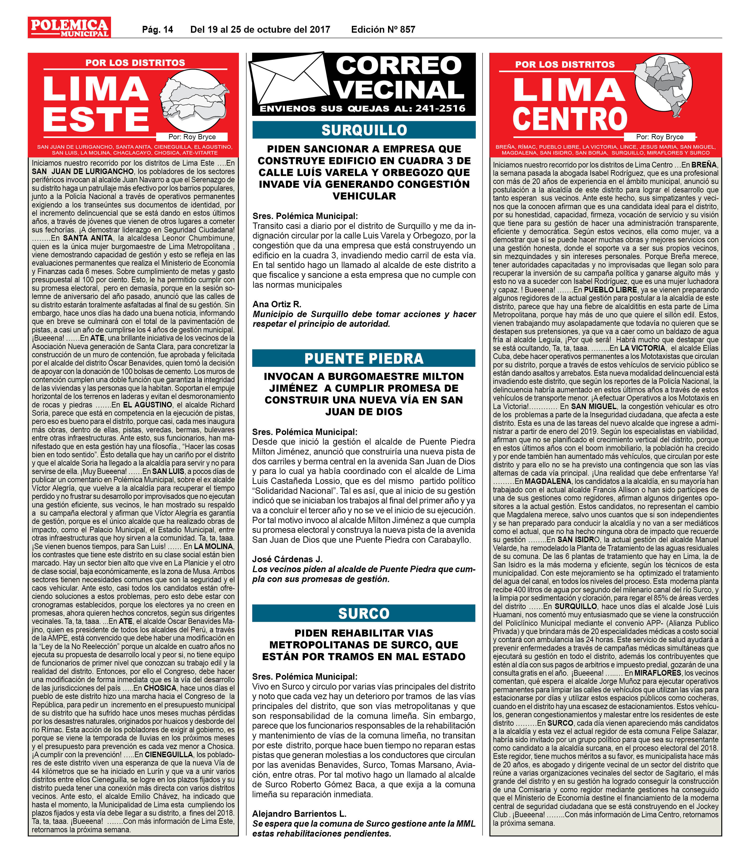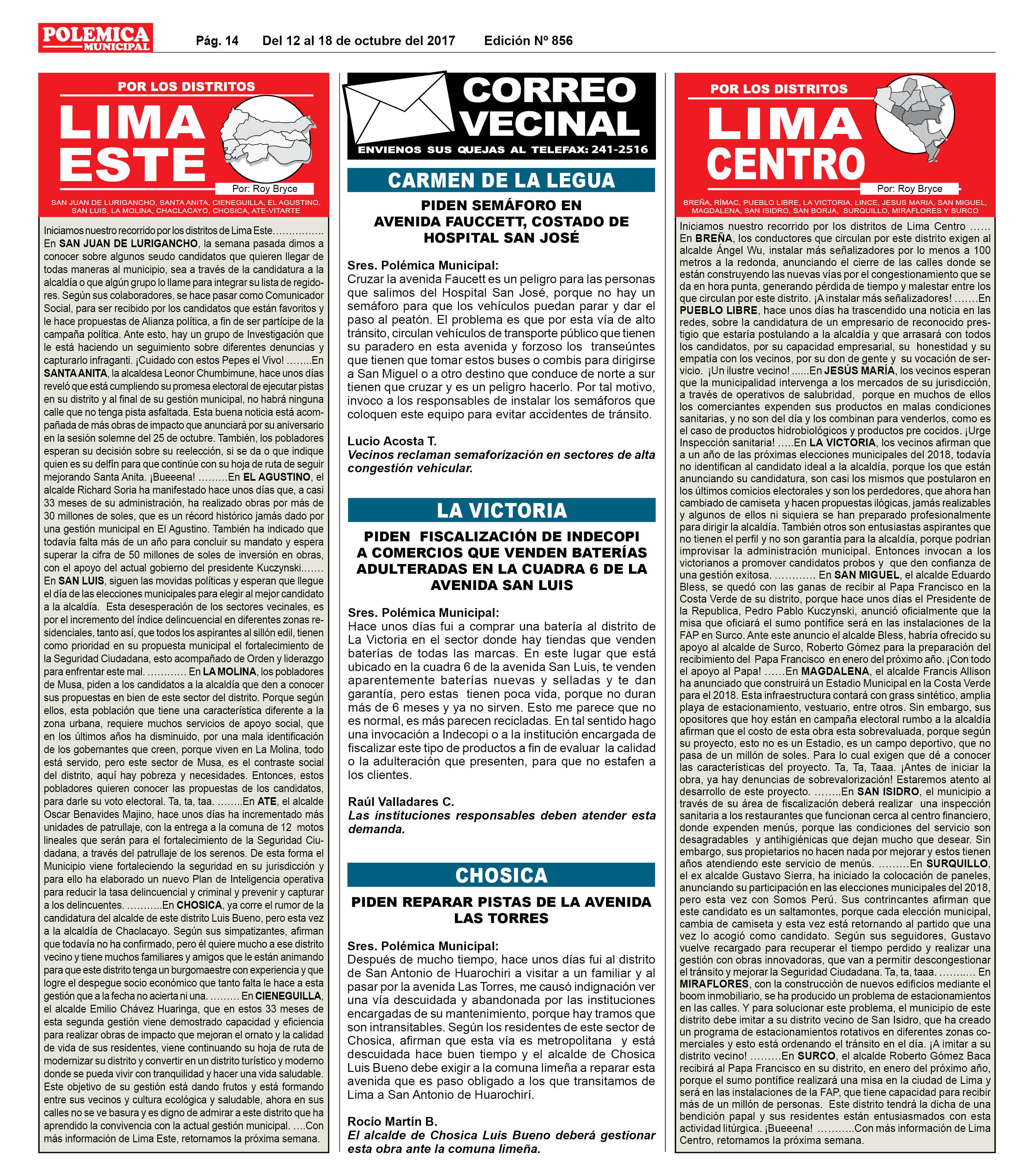 EDICION Nº 915. LIMA CENTRO, LIMA ESTE Y CORREO VECINAL