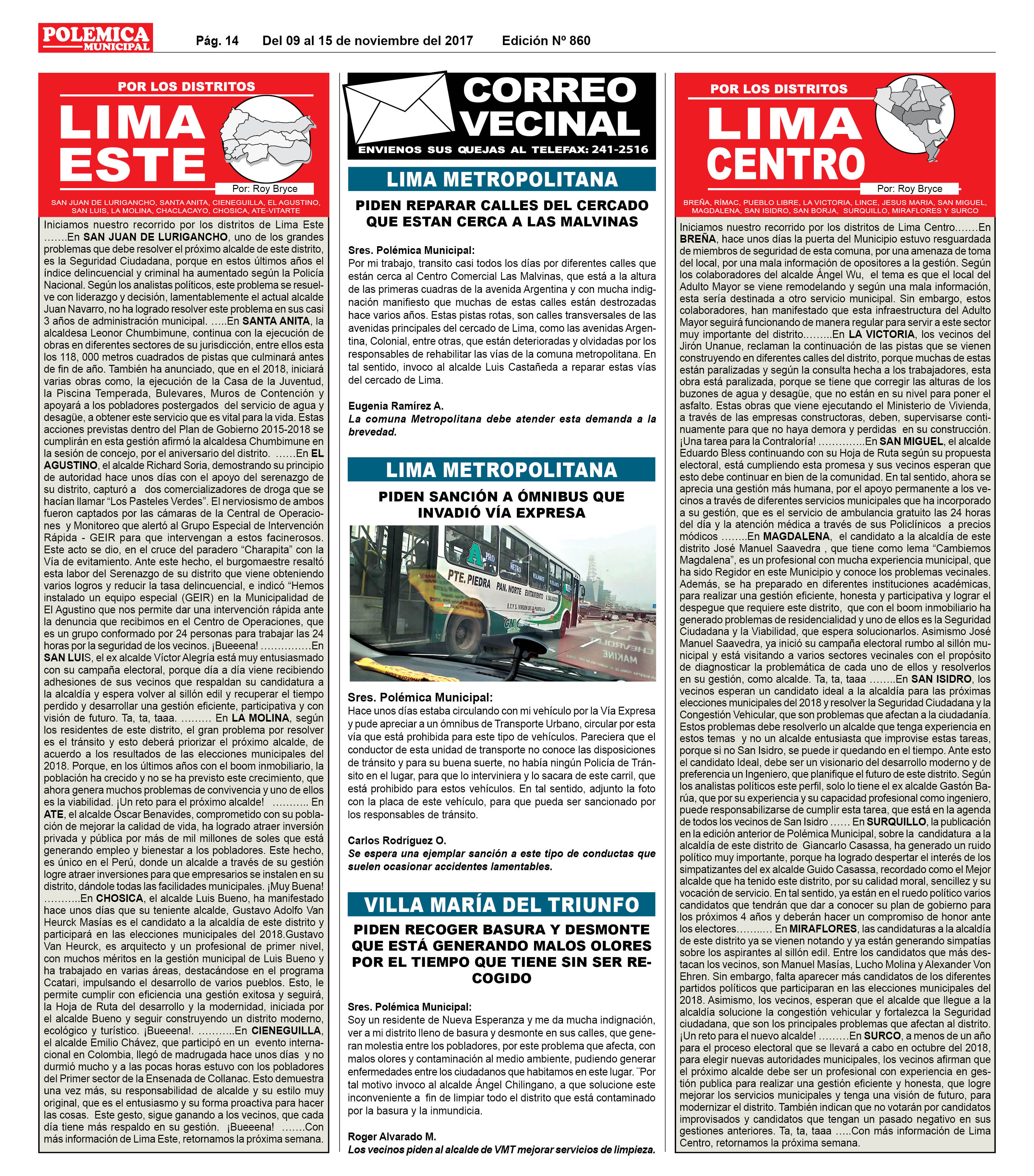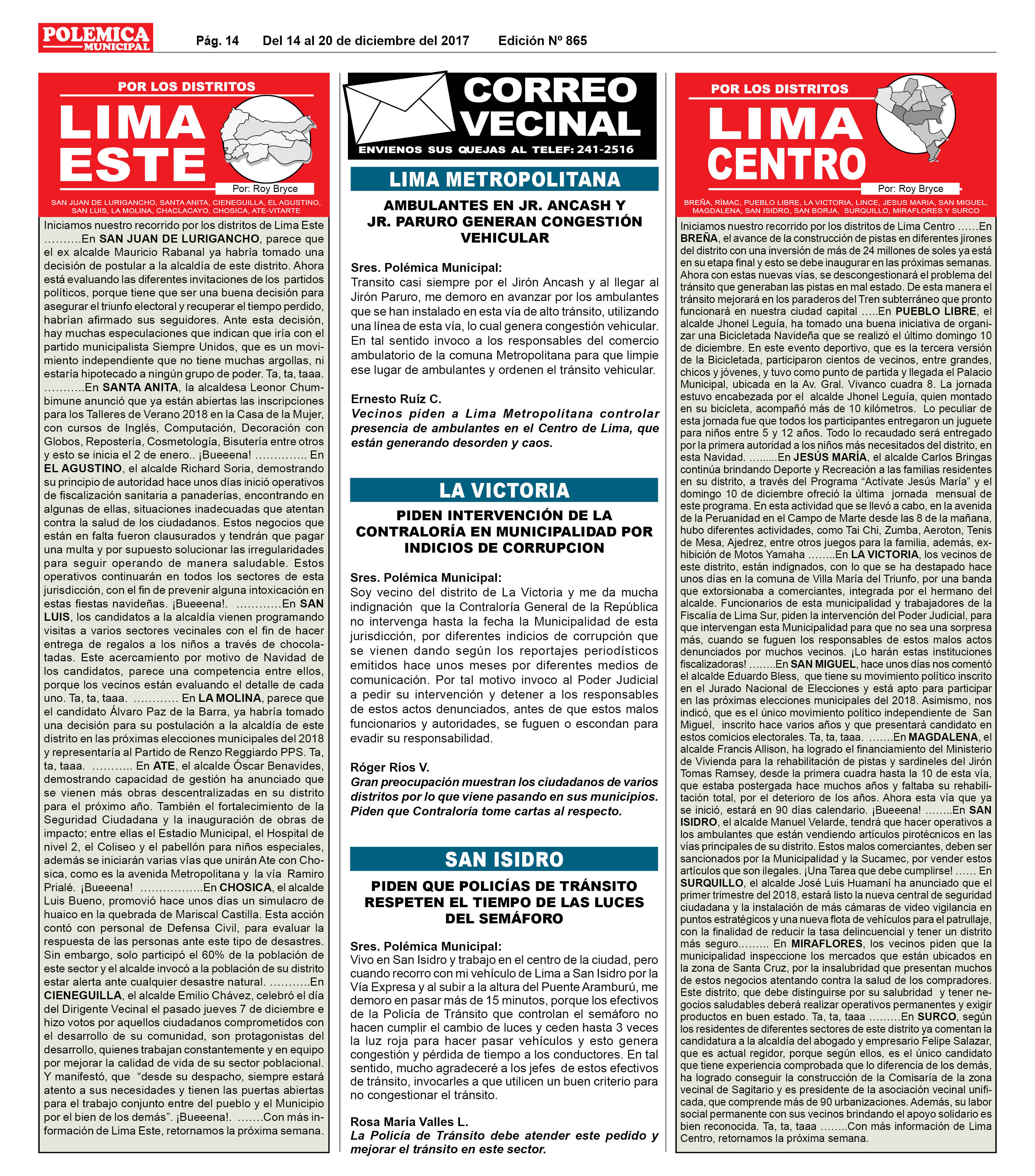 EDICION Nº 767. LIMA CENTRO, LIMA ESTE Y CORREO VECINAL