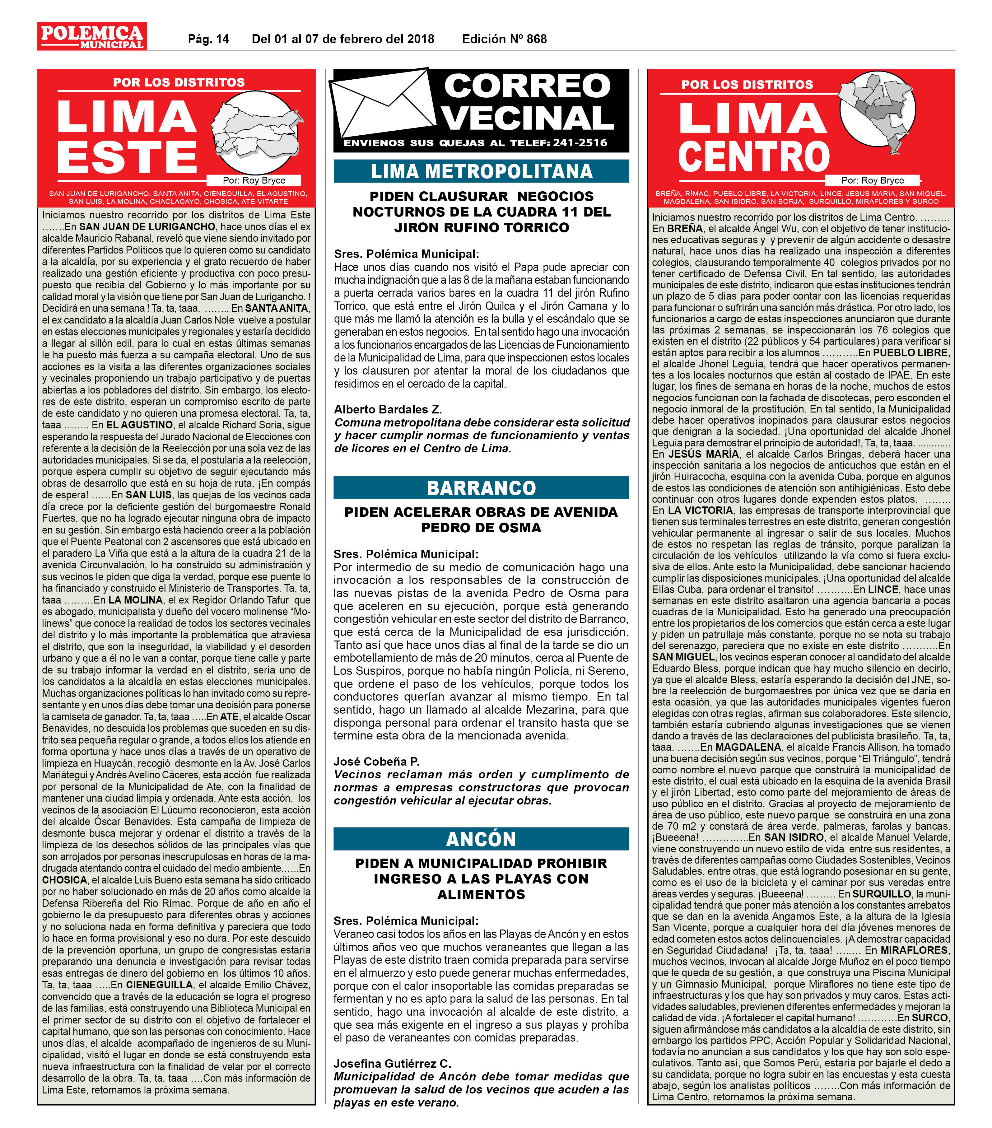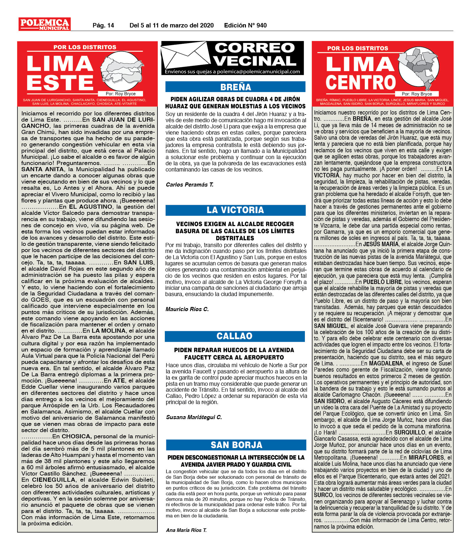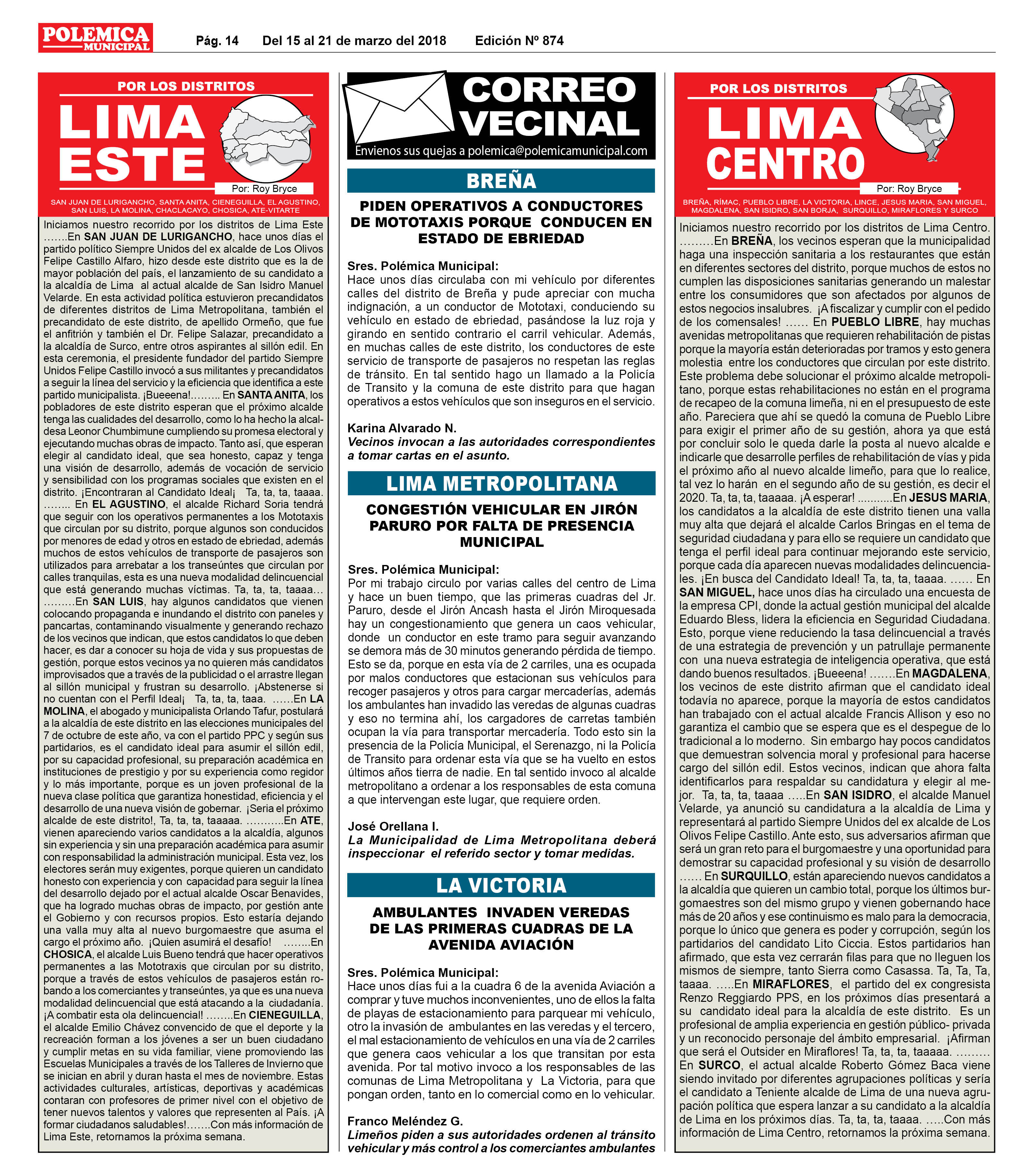 EDICION Nº 726. LIMA CENTRO, LIMA ESTE Y CORREO VECINAL