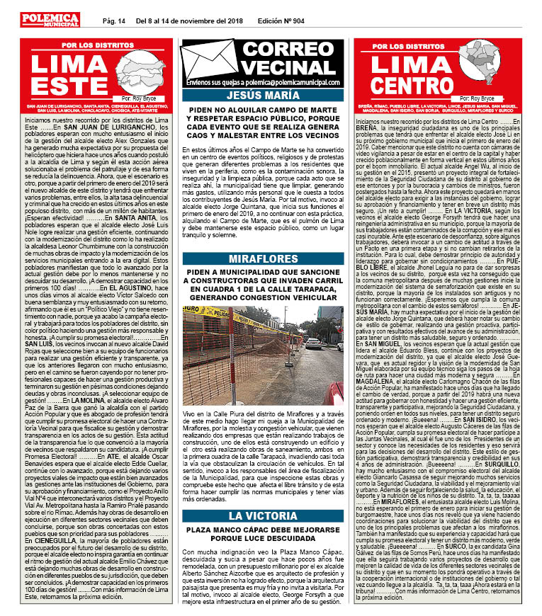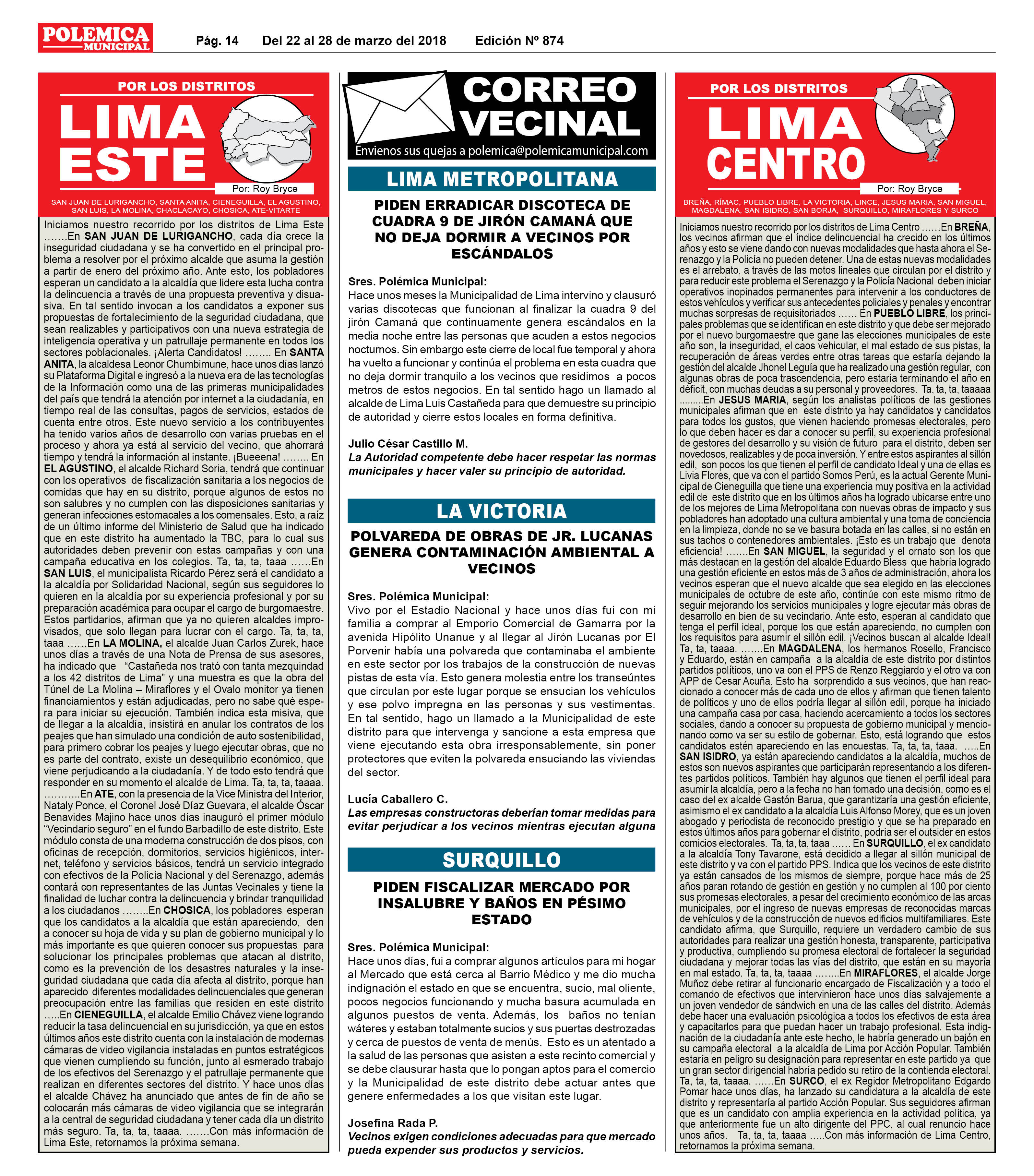 EDICION Nº 904. LIMA CENTRO, LIMA ESTE Y CORREO VECINAL