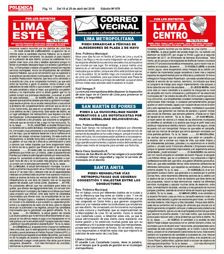 EDICION Nº 878. LIMA CENTRO, LIMA ESTE Y CORREO VECINAL