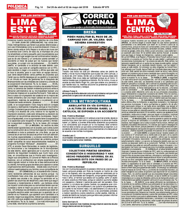 EDICION Nº 879. LIMA CENTRO, LIMA ESTE Y CORREO VECINAL