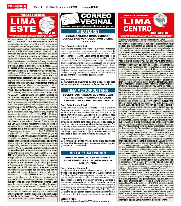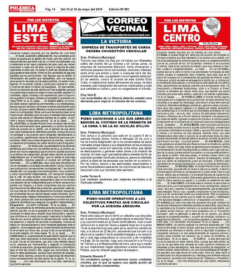 EDICION Nº 881. LIMA CENTRO, LIMA ESTE Y CORREO VECINAL
