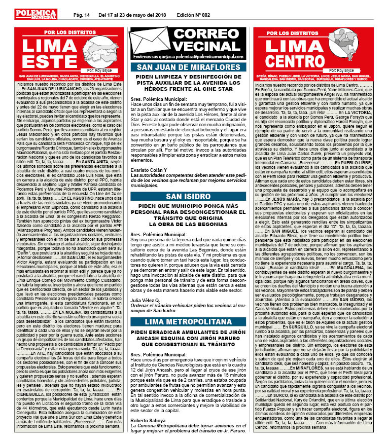 EDICION Nº 882. LIMA CENTRO, LIMA ESTE Y CORREO VECINAL