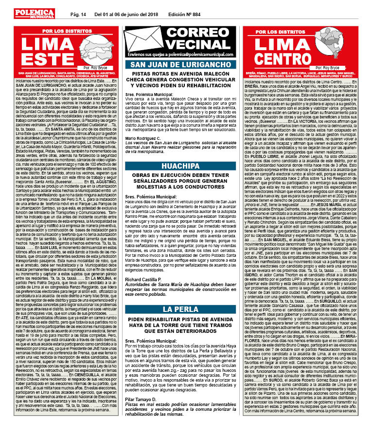 EDICION Nº 884. LIMA CENTRO, LIMA ESTE Y CORREO VECINAL