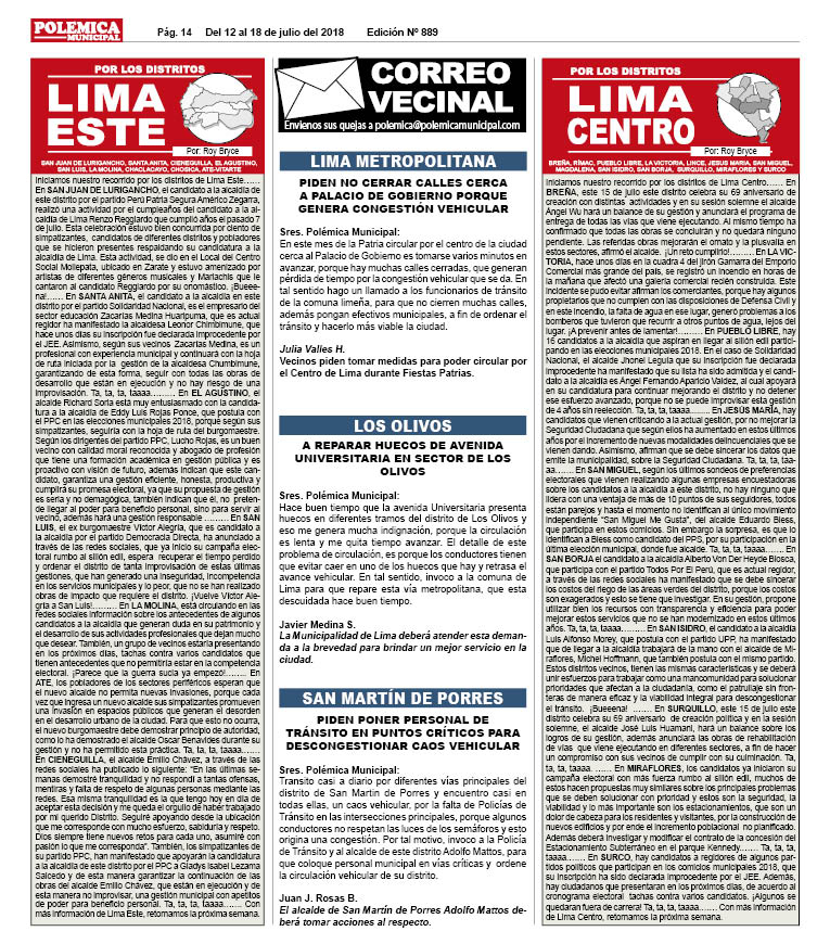 EDICION Nº 889. LIMA CENTRO, LIMA ESTE Y CORREO VECINAL