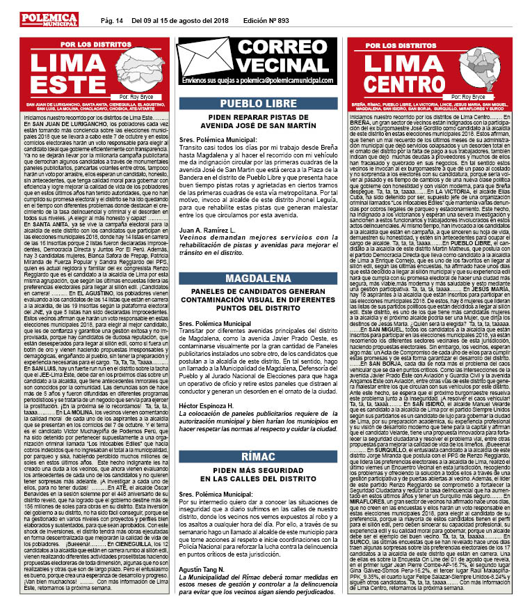 EDICION Nº 893. LIMA CENTRO, LIMA ESTE Y CORREO VECINAL