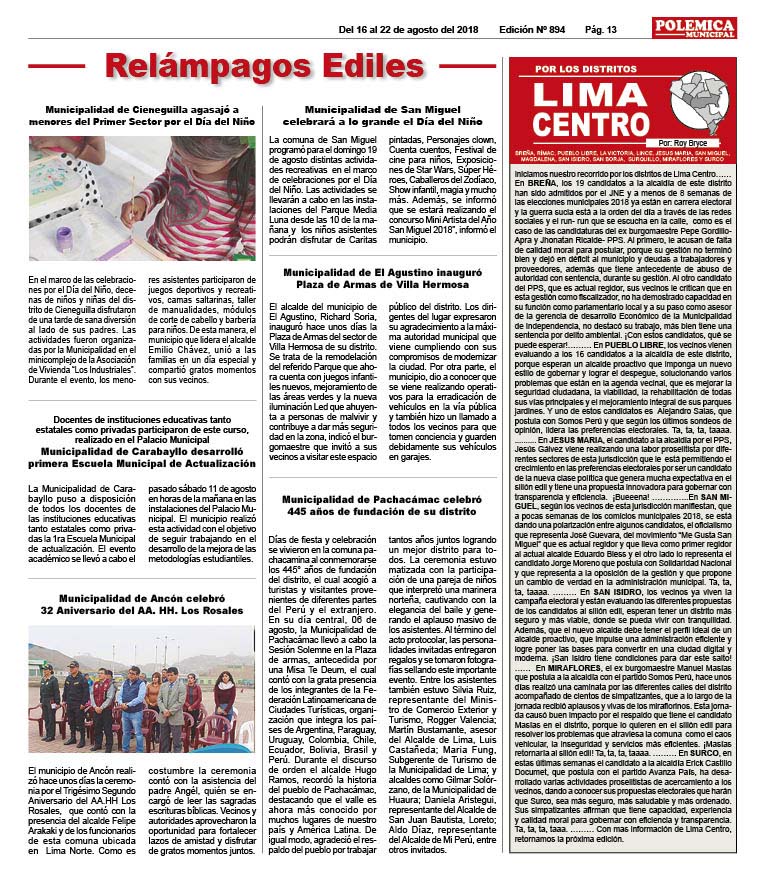 EDICION Nº 894. LIMA CENTRO, LIMA ESTE Y CORREO VECINAL