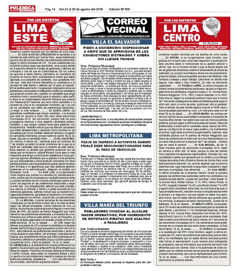 EDICION Nº 895. LIMA CENTRO, LIMA ESTE Y CORREO VECINAL