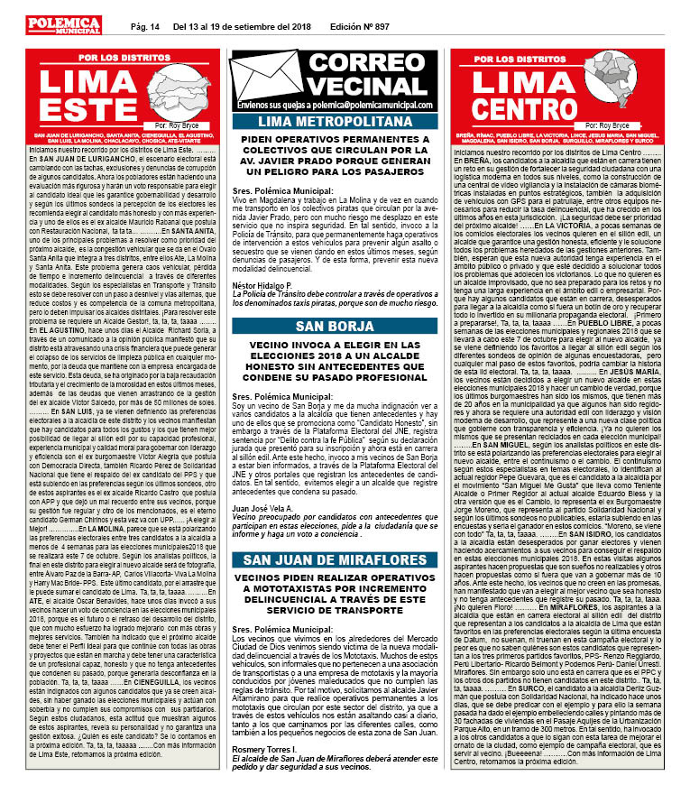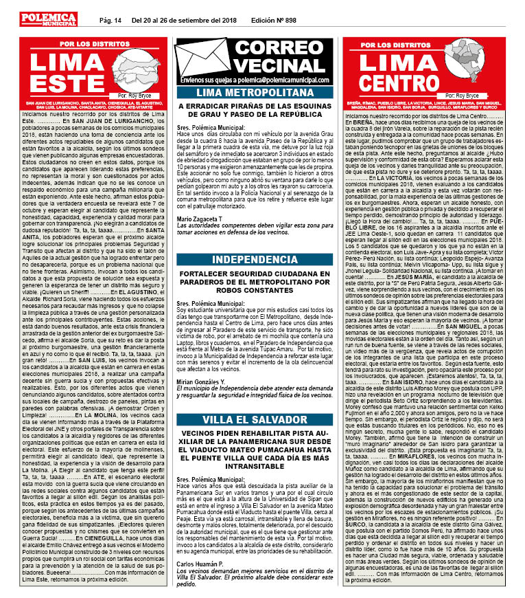 EDICION Nº 898. LIMA CENTRO, LIMA ESTE Y CORREO VECINAL