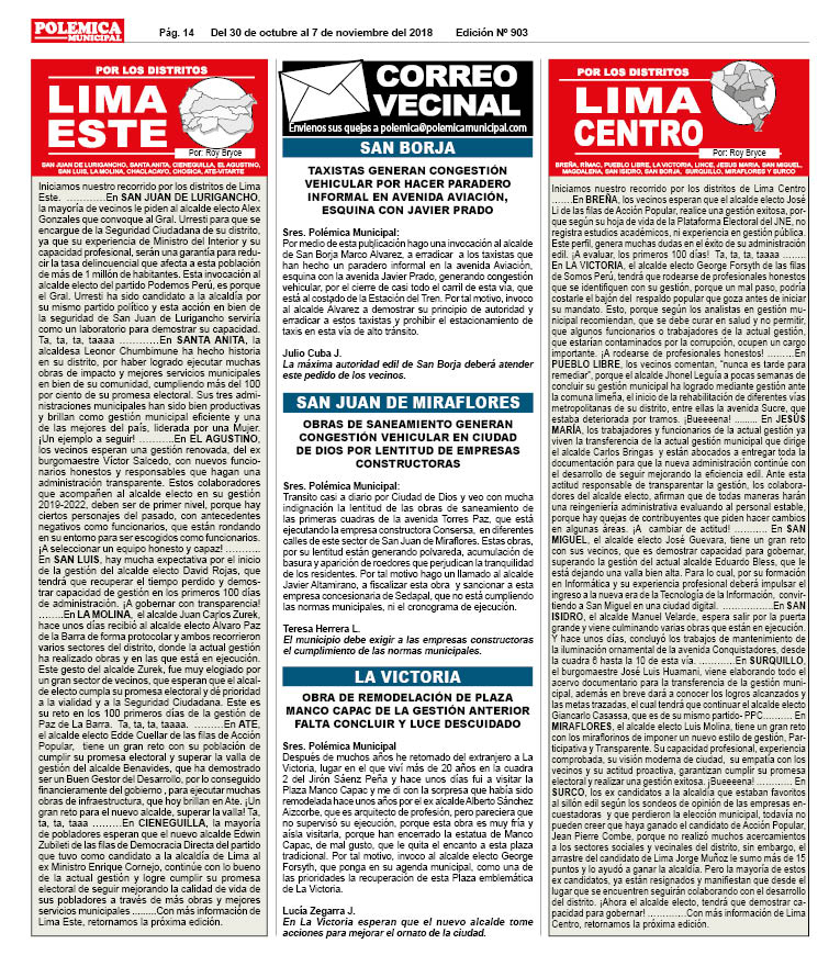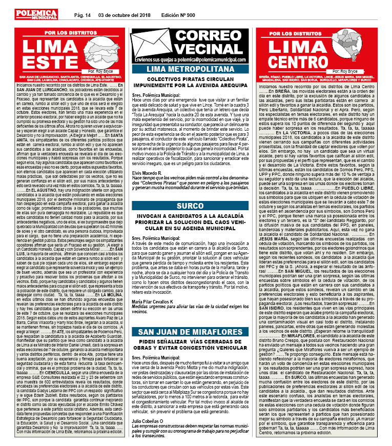 EDICION Nº 903. LIMA CENTRO, LIMA ESTE Y CORREO VECINAL