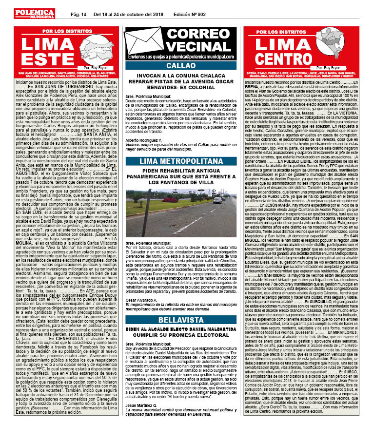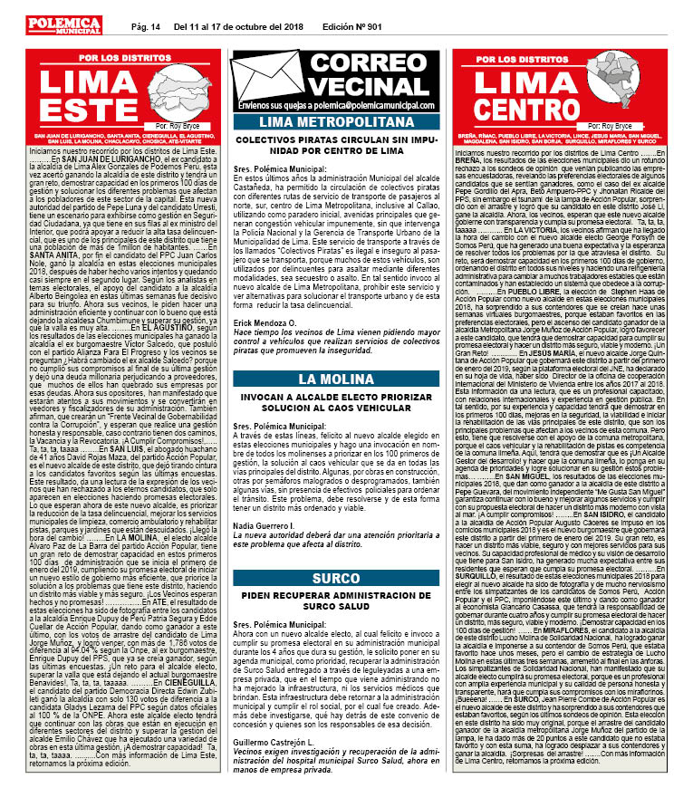 EDICION Nº 902. LIMA CENTRO, LIMA ESTE Y CORREO VECINAL