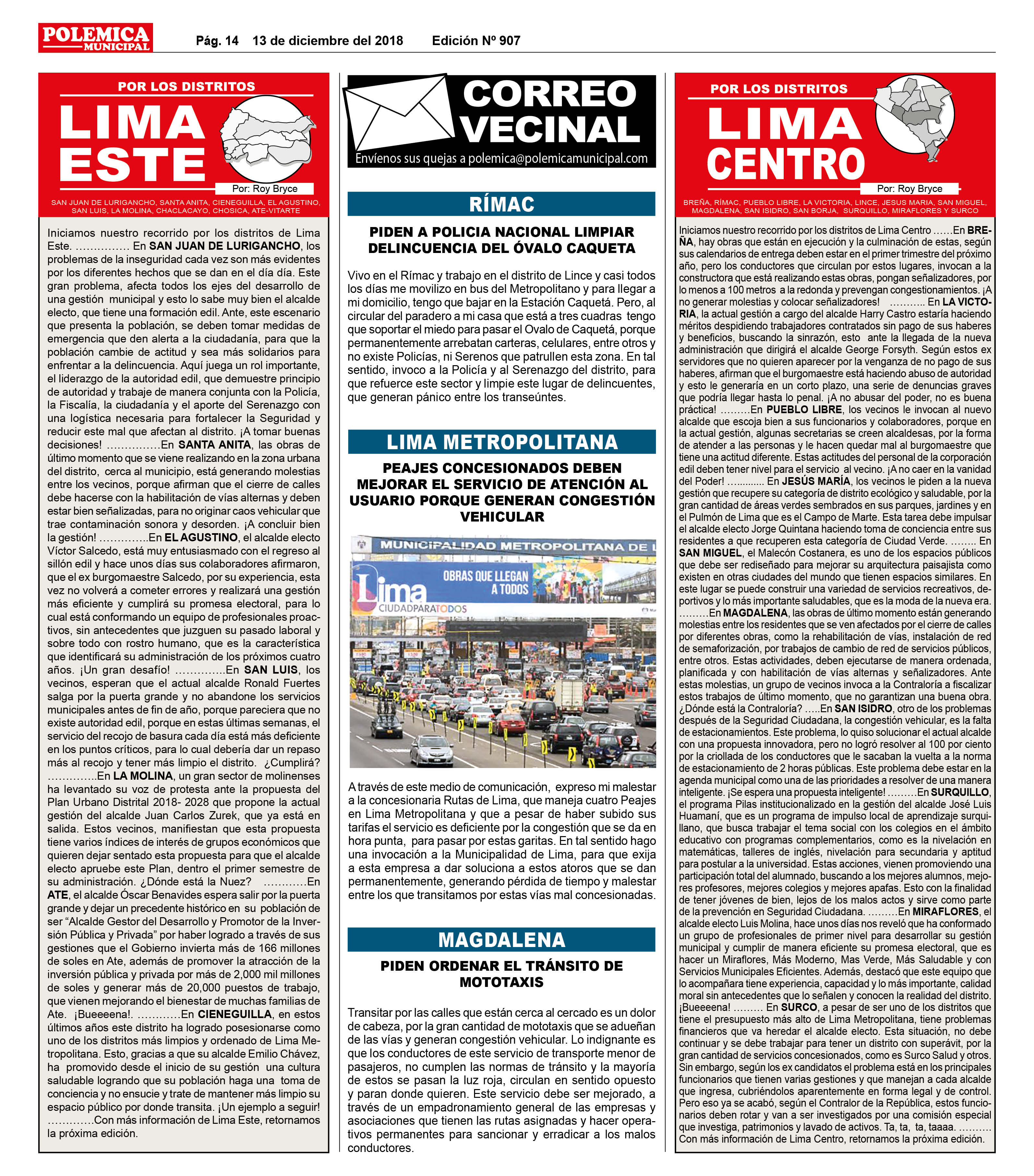 EDICION Nº 907. LIMA CENTRO, LIMA ESTE Y CORREO VECINAL