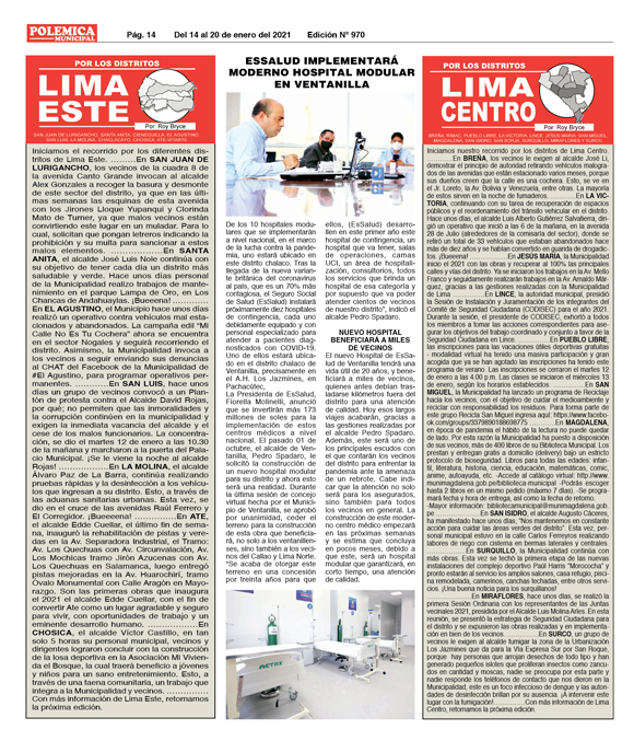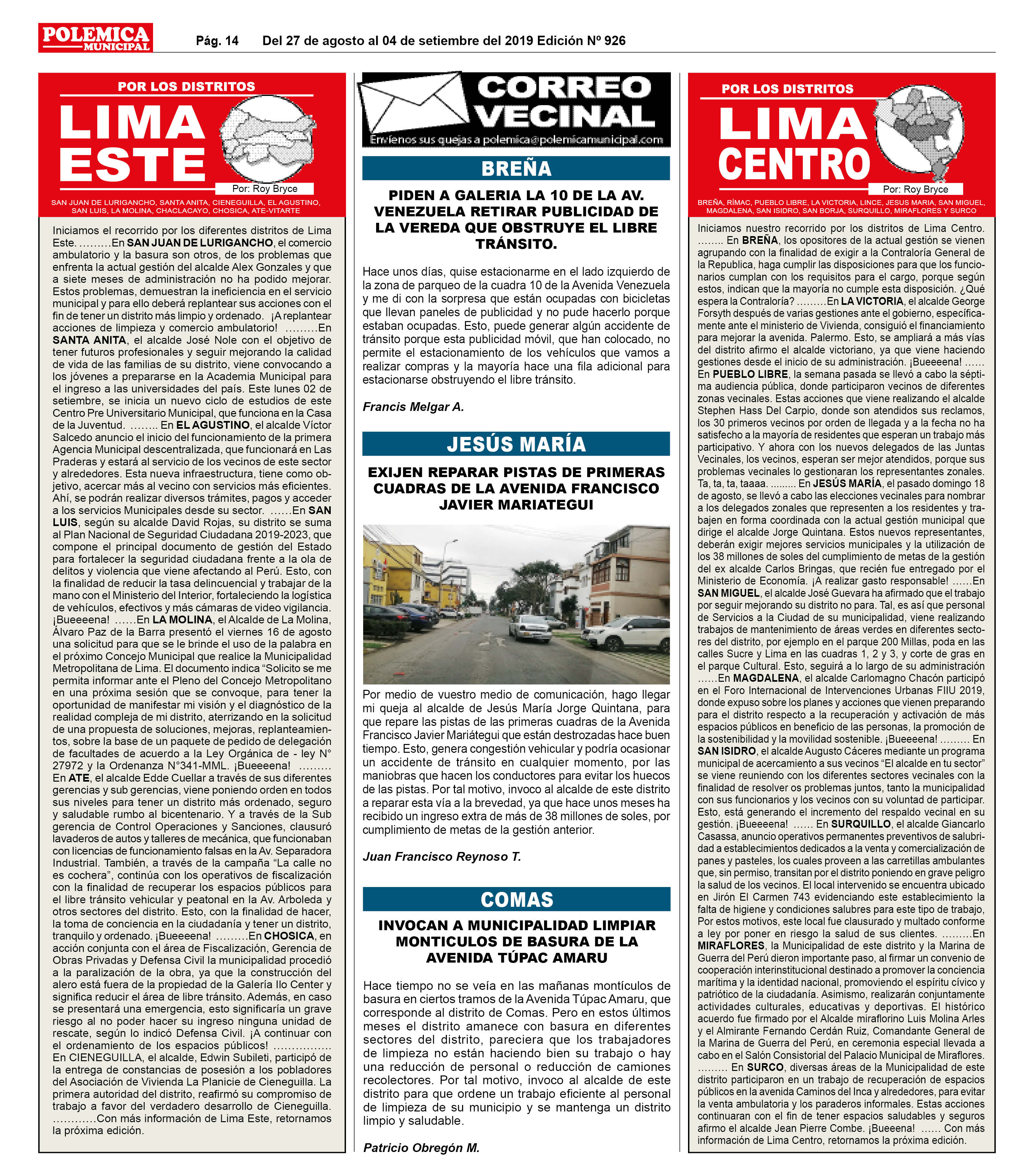 EDICION Nº 926. LIMA CENTRO, LIMA ESTE Y CORREO VECINAL