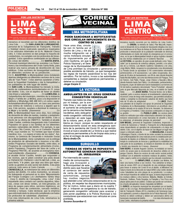 EDICION Nº 962. LIMA CENTRO, LIMA ESTE Y CORREO VECINAL