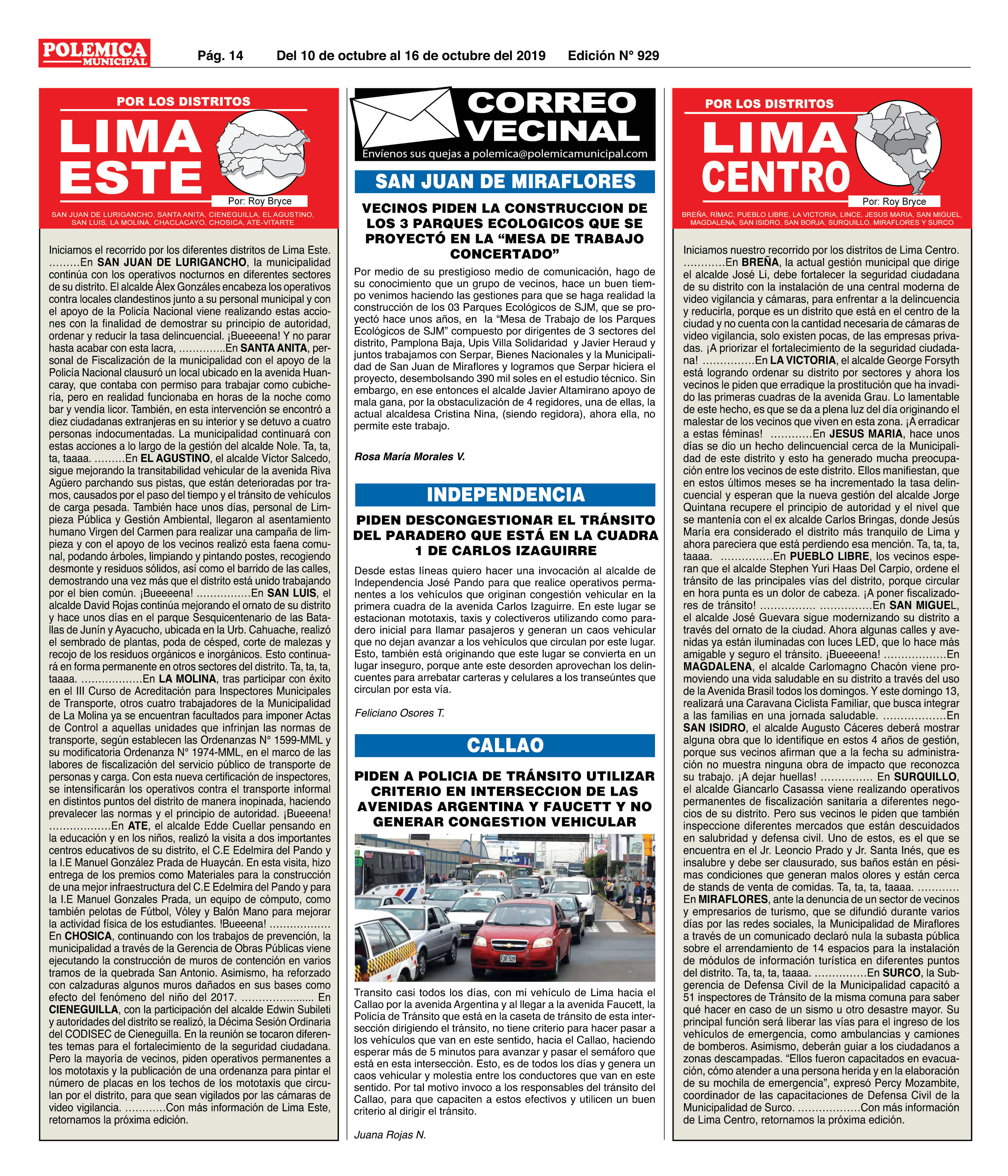 EDICION Nº 929. LIMA CENTRO, LIMA ESTE Y CORREO VECINAL