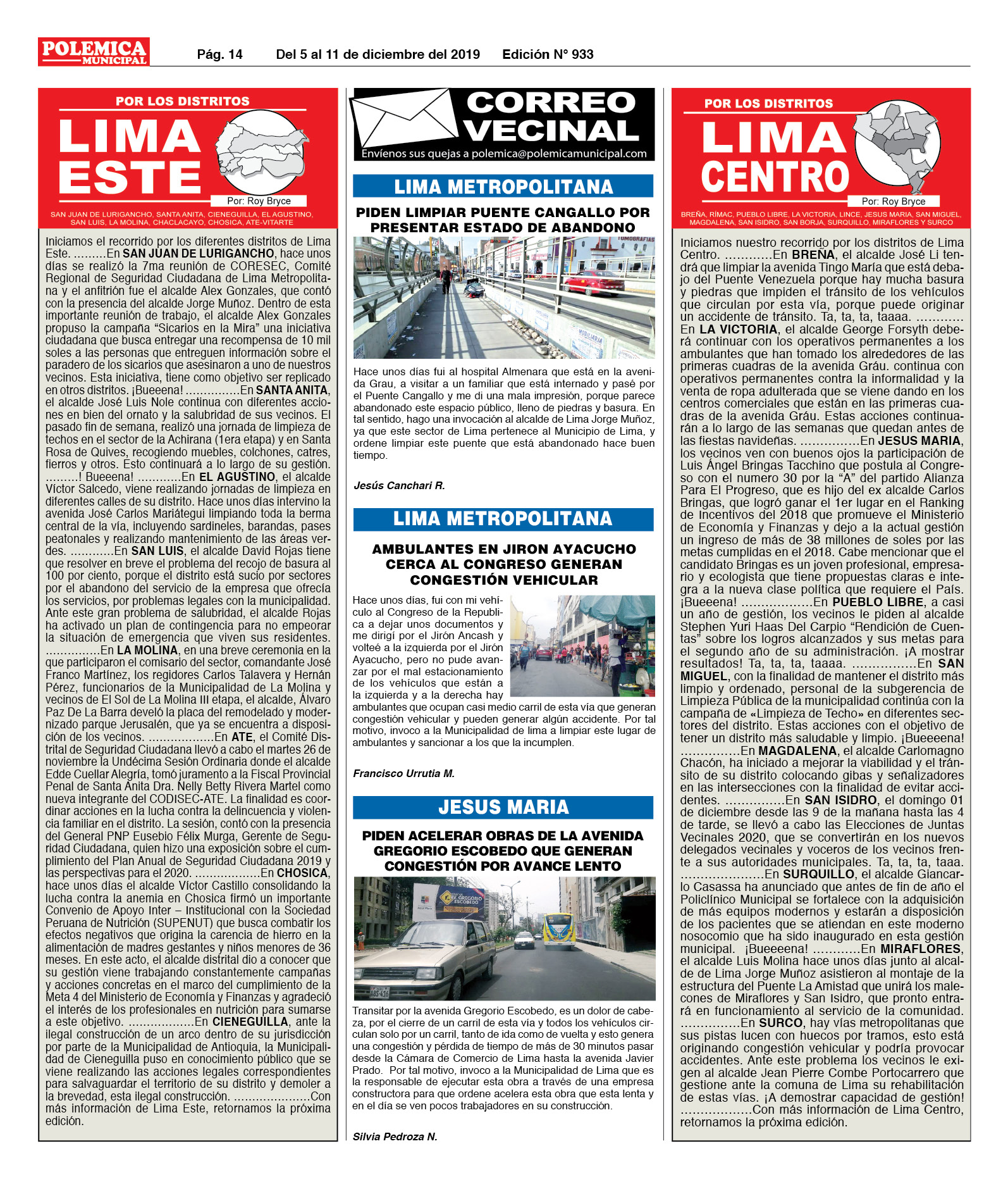 EDICION Nº 933. LIMA CENTRO, LIMA ESTE Y CORREO VECINAL