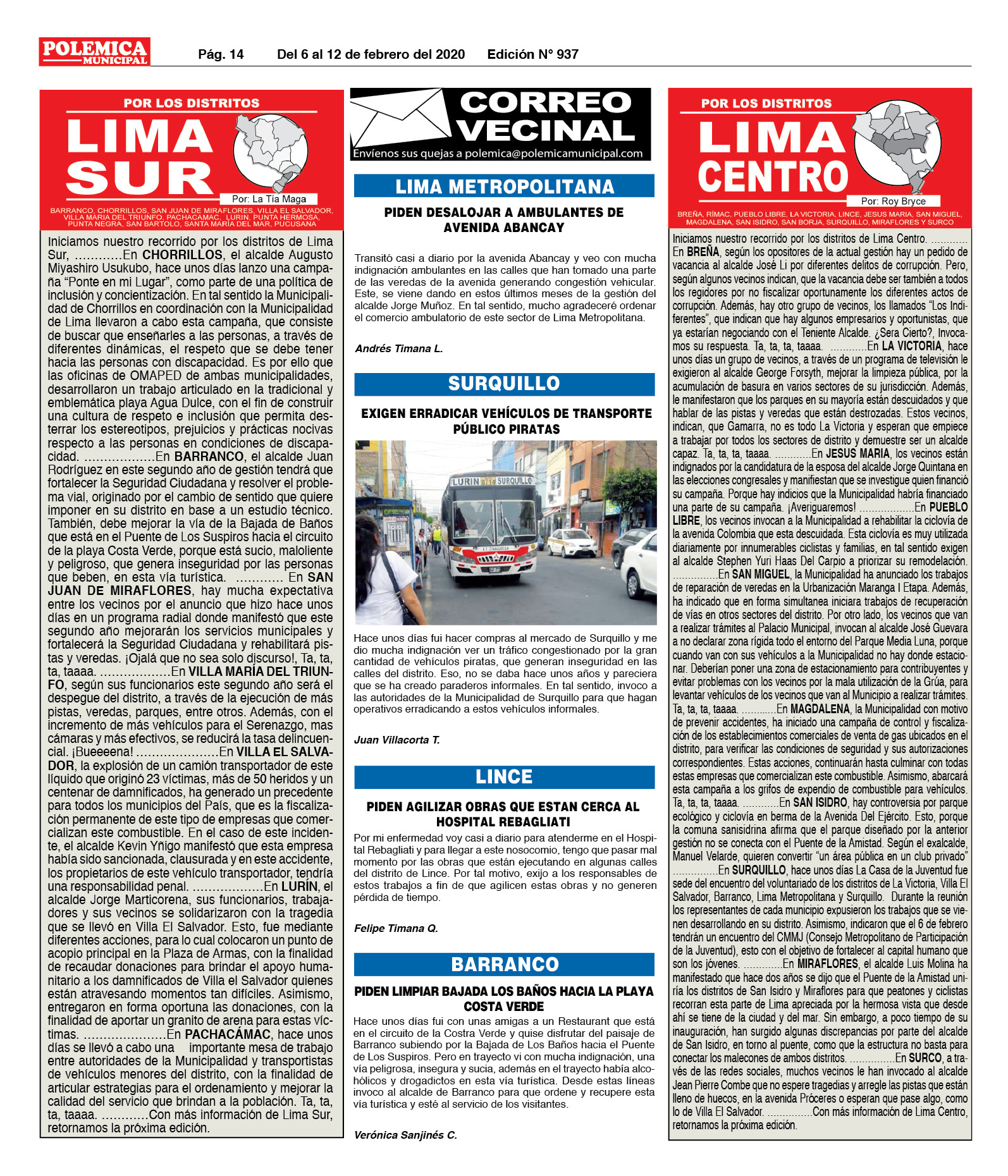 EDICION Nº 937. LIMA CENTRO, LIMA ESTE Y CORREO VECINAL