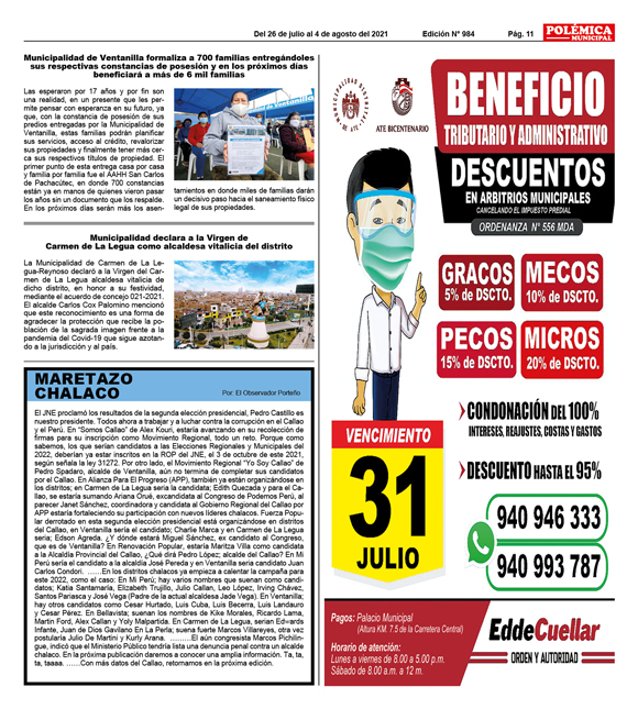 EDICION Nº 847. MARETAZO CHALACO.