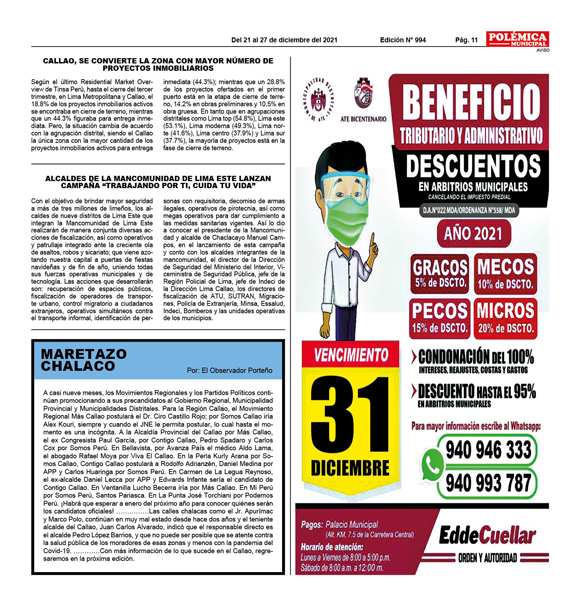 EDICION Nº 861. MARETAZO CHALACO.
