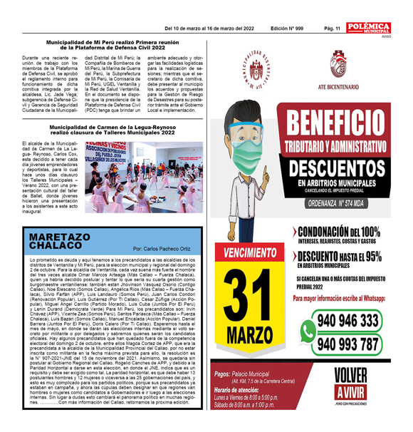 EDICION Nº 750. MARETAZO CHALACO.