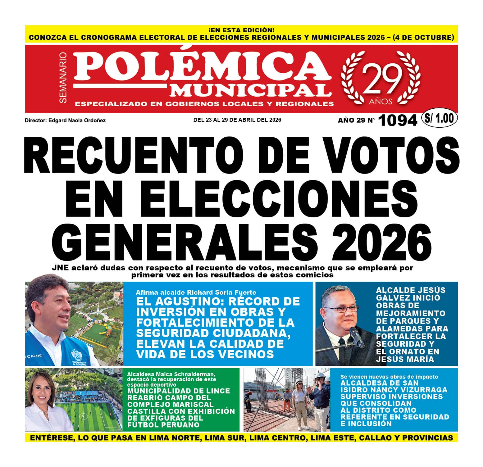 BREÑA, hay una tarea muy amplia para el próximo alcalde que llegue al sillón edil, entre las prioridades están el fortalecimiento de la seguridad, la limpieza pública, la rehabilitación de pistas, veredas y el reordenamiento ambulatorio, entre otros.