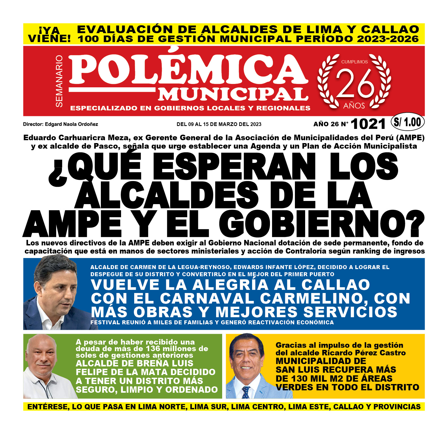 Los alcaldes distritales de Lima Metropolitana esperan que el alcalde Rafael López Aliaga convoque a una Asamblea Metropolitana para establecer una agenda de prioridades, entre ellos la seguridad ciudadana, la congestión vehicular y la limpieza pública y dar solución a los problemas que existen en diferentes distritos de la capital como en Lima Norte, que llega hasta el distrito de Ancón y en Lima Sur, que llega hasta el distrito de Pucusana. También en Lima Este que llega hasta el distrito de Lurigancho- Chosica o en Lima Centro que limita el distrito de San Miguel con el distrito de La Perla- Callao. En la mayoría de los 43 distritos de Lima Metropolitana, hay problemas de seguridad ciudadana, congestión