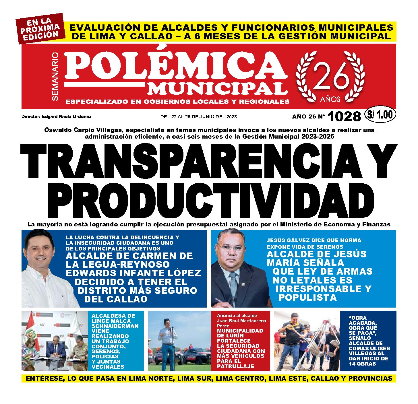 Iniciamos nuestro recorrido por los distritos de Lima Norte, …En ANCON, el Municipio inició la recuperación judicial del excine Bahía, arrendado por 4 años y cuya sede será el futuro Museo Municipal de Ancón. ……En SANTA ROSA, la institución educativa Santa Rosa de PROFAM, logró su título de propiedad. Gestión iniciada durante el periodo del exalcalde y actual regidor metropolitano Alan Carrasco Bobadilla, llegó a buen puerto. ……En PUENTE PIEDRA, “Nosotros en Puente Piedra ya usamos gas pimienta, y chalecos antibalas. Los congresistas están desconectados de la realidad. ¿Qué les pasa? Nos quieren tomar el pelo, no han aprobado nada nuevo”, aseveró Rennán Espinoza Rosales, alcalde de ese distrito. ……En LOS OLIVOS, Según el informe posterior Nº 11392-2023-CG/DEN-AOP de la Contraloría, La Subgerencia de Infraestructura y Obras Públicas de la Municipalidad Distrital de Los Olivos, no supervisó la participación del residente de modo permanente y directo durante la ejecución de la obra «Mejoramiento del servicio de movilidad urbana en la Av. Platinos de la Urb. Lotización Industrial Infantas, I etapa, 2do sector», contraviniendo la normativa de contrataciones. ……En SAN MARTIN DE PORRES, clausuran establecimiento en la Cdra. 33 de la Av. Universitaria, a pocos metros de donde fue abatido el delincuente conocido como ‘Maldito Cris’. Establecimiento no cumplía con la normativa municipal y vecinos denunciaron que emitía altos niveles de ruido que perturbaba su tranquilidad. ……En COMAS, sensación de inseguridad se reduce en el distrito, en seis meses de gestión se intervino 4,186 personas y se realizó 1,599 patrullajes integrados con la PNP, Juntas Vecinales y la sociedad civil. Campaña no le juegues sucio al distrito, empieza a dar resultados, calles y avenidas se ven limpias. ……En INDEPENDENCIA, según el informe de control simultáneo Nº 007-2023-OCI/2181-SVC de la Contraloría, la municipalidad no cuenta con una Directiva interna que establezca normas y procedimientos para el proceso de recaudación, custodia y depósito de los ingresos recaudados a cargo de la Oficina de Tesorería, lo cual limita el control y genera el riesgo de afectar el adecuado desarrollo del proceso de recaudación, custodia y depósito de los ingresos. Los ingresos recaudados por la Oficina de Tesorería no son depositados en las cuentas bancarias en forma oportuna; asimismo, no son centralizados a la Cuenta Única del Tesoro (CUT), lo que afectaría la transparencia, generando el riesgo de que los recursos recaudados sean destinados a fines ajenos de la municipalidad. ……En CARABAYLLO, mediante Decreto de Alcaldía Nº 011-2023-MDC de fecha 14 de junio, publicado en Normas Legales, se dispone el embanderamiento del distrito por sus 452 aniversario. ……En el RIMAC, formalizan con código QR a mototaxistas, es una nueva estrategia contra la inseguridad ciudadana. Una iniciativa para imitar por otras municipalidades por los niveles de seguridad que dan los aplicativos QR a los usuarios de los servicios de mototaxis. ……En la MANCOMUNIDAD MUNICIPAL LIMA NORTE, la nueva ley de uso de armas no letales, obliga un pronunciamiento institucional, pero son los grandes ausentes en este debate por la seguridad ciudadana.… Con más información de Lima Norte, retornamos la próxima edición.
