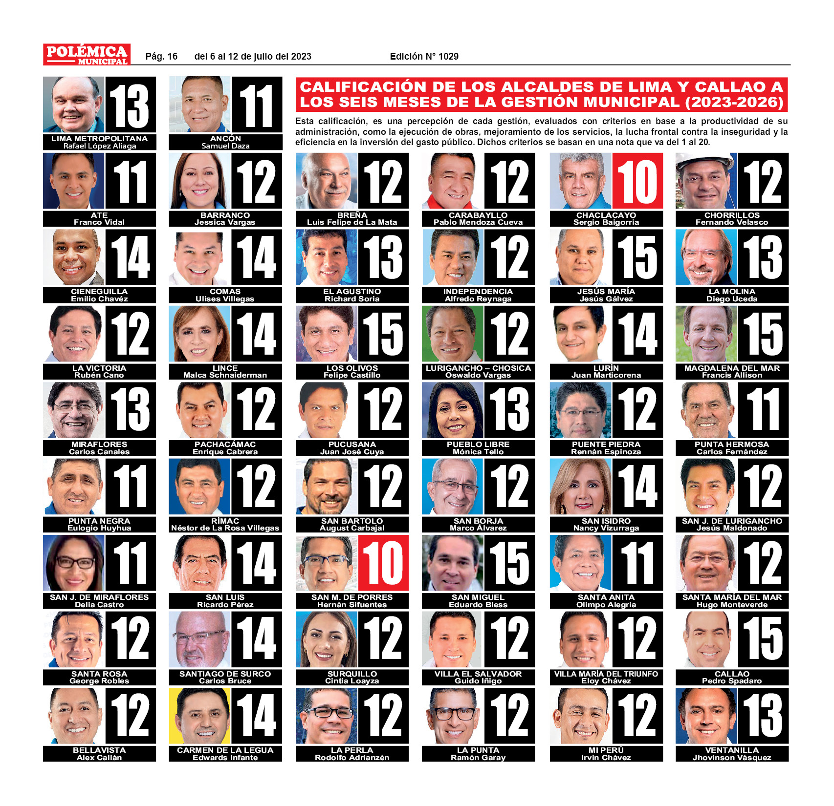CALIFICACIÓN DE LOS ALCALDES DE LIMA Y CALLAO A LOS 100 DÍAS DE LA GESTIÓN MUNICIPAL (2023 – 2026)