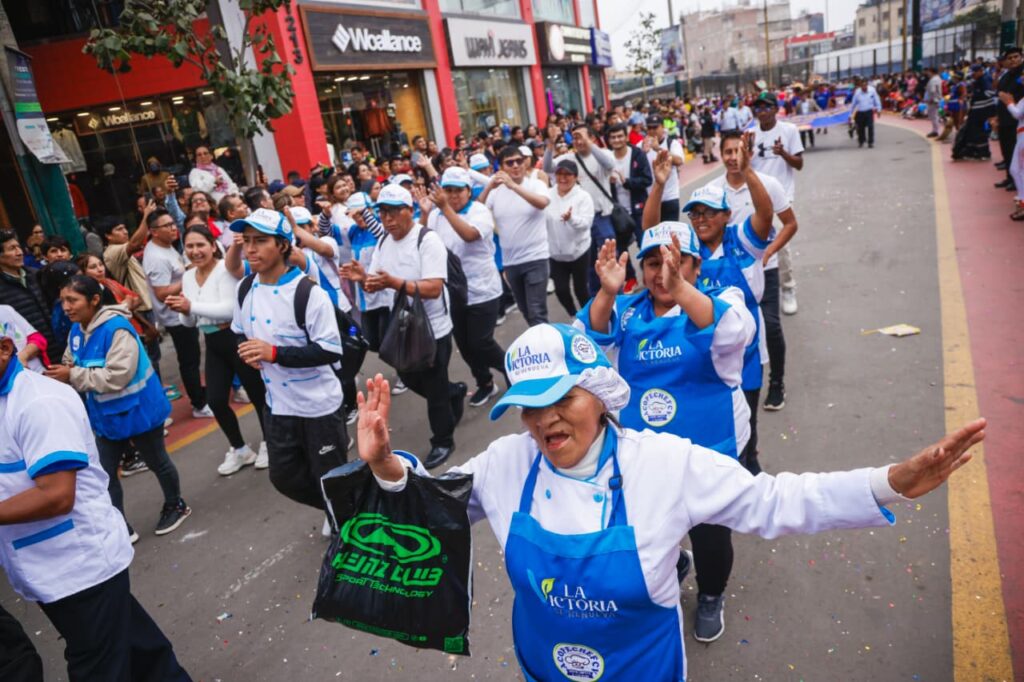 En La Victoria los vecinos disfrutaron del desayuno campeón Pan con Chicharrón que nos representa, gracias al apoyo de ARMAP y empresarios de Gamarra