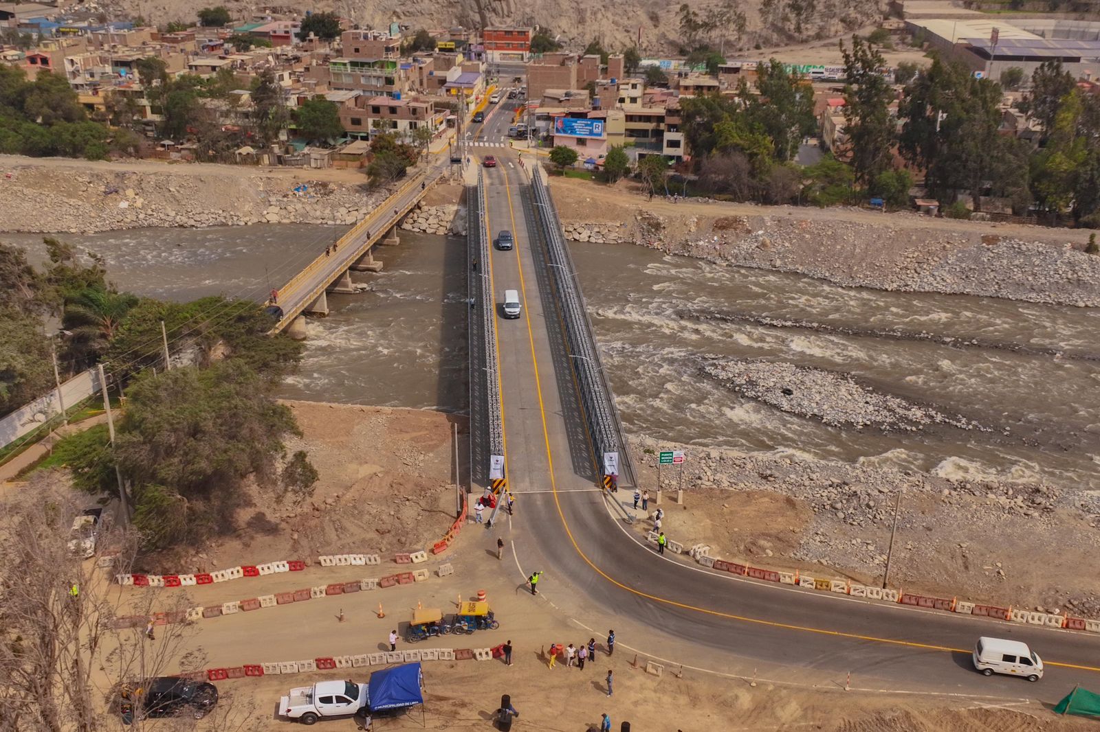 Con el objetivo de fortalecer la conectividad y mejorar la transitabilidad entre Lurigancho–Chosica y Chaclacayo, el alcalde de Lima, Renzo Reggiardo, puso en operación el nuevo Puente Morón sobre el río Rímac, una obra clave para Lima Este. “Seguimos avanzando con obras que conectan, que generan progreso y que, sobre todo, brindan seguridad y calidad de vida a los limeños. Porque una ciudad moderna no solo se mide por sus vías, sino por el bienestar de quienes la habitan”, expresó el burgomaestre. La infraestructura beneficia a más de 500 mil vecinos y permite reducir de forma significativa los tiempos de viaje en la ruta Chosica–Lima, pasando de hasta dos horas y media a aproximadamente 45 minutos. Esta mejora facilita el acceso hacia el centro de la ciudad y optimiza el tránsito en ambos sentidos. “Durante años, muchos han tenido que soportar viajes largos y agotadores. Hoy ese tiempo se reduce a solo 45 minutos”, agregó. La obra, que demandó una inversión superior a los S/ 12 millones. Durante la ceremonia participaron el alcalde de Lurigancho–Chosica, Oswaldo Vargas; el alcalde de Chaclacayo, Sergio Baigorria; y el vicepresidente del directorio del Fondo Metropolitano de Inversiones (Invermet), Pedro Sagástegui, junto a vecinos de la zona, quienes agradecieron y saludaron la ejecución de la obra.